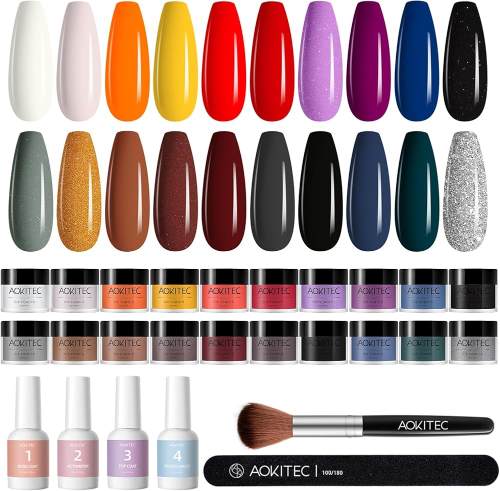 【كبيرة وبأسعار معقولة جدًا】8❤ بودرة غمس أظافر بألوان رائعة (10 جرام لكل واحدة)، 4❤مجموعة أساسية من السوائل (مع طبقة أساسية وطبقة علوية، منشط، موفر للفرشاة 15 مل لكل واحدة)، 3❤ أداة أظافر احترافية إضافية (مع فرشاة أظافر احترافية، أ مبرد أظافر ضخم مزدوج الجانب، 1❤دليل المستخدم). يمكن لمجموعة أدوات الأظافر مسحوق غمس المنزل من Aokitec الحصول على معدات بجودة صالونات تجميل الأظافر مقابل رسوم رمزية. غير راضٍ عن ضمان استرداد الأموال بنسبة 100%، خدمة عملاء ودية لمدة 18 شهرًا بدون قلق.