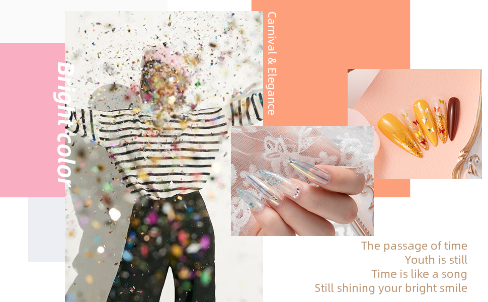 • 【هدية رائعة لك أو لصديقتك】هدية ملونة لا تمنح ألوانًا للأظافر فحسب، بل تجلب أيضًا خيالًا رائعًا وغير محدود في حياتك. سواء كنت مطلقًا للتو من العمل اليومي أو تخطط لقضاء عطلة نهاية أسبوع سعيدة أو مهرجان، سيكون خيارًا جيدًا لإضافة المزيد من المرح إلى حياتك. شارك فن الأظافر الخاص بك مع الأصدقاء، وابحث عن المزيد من الاهتمامات المشتركة! حان الوقت لتكون ساحرًا!