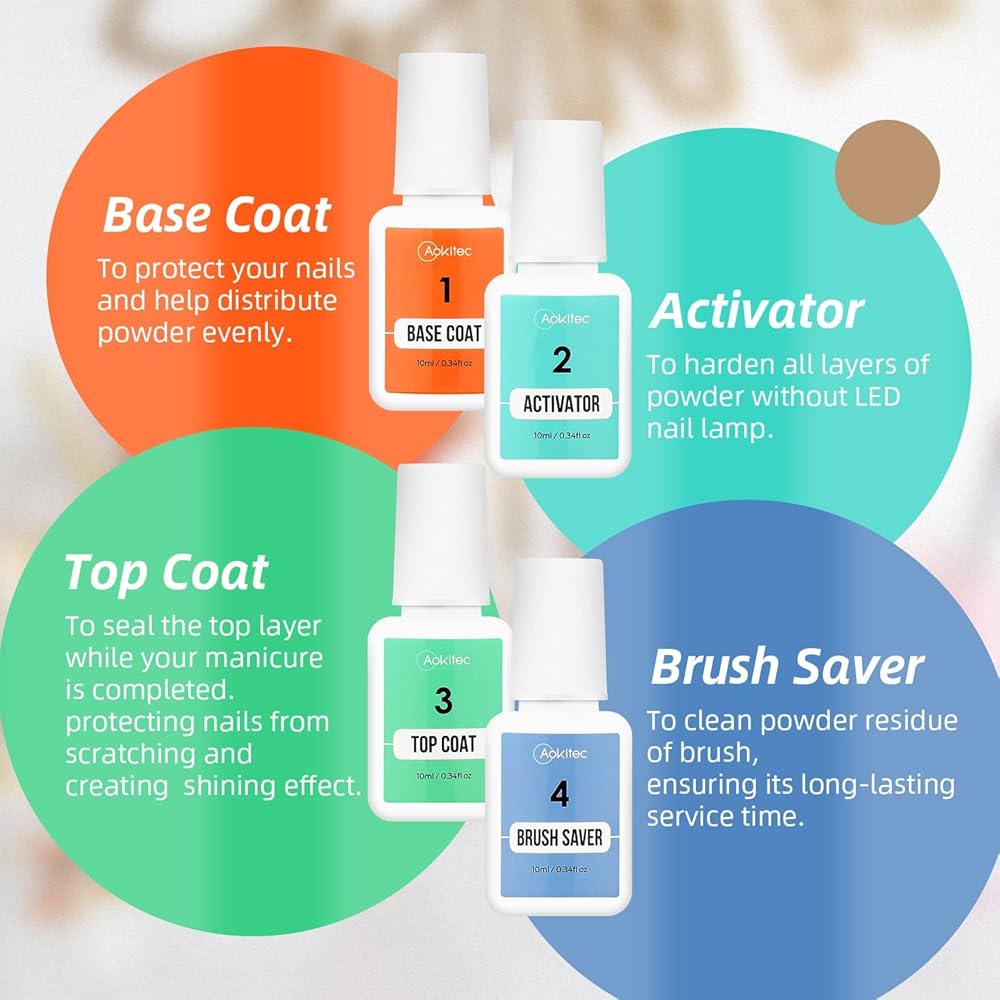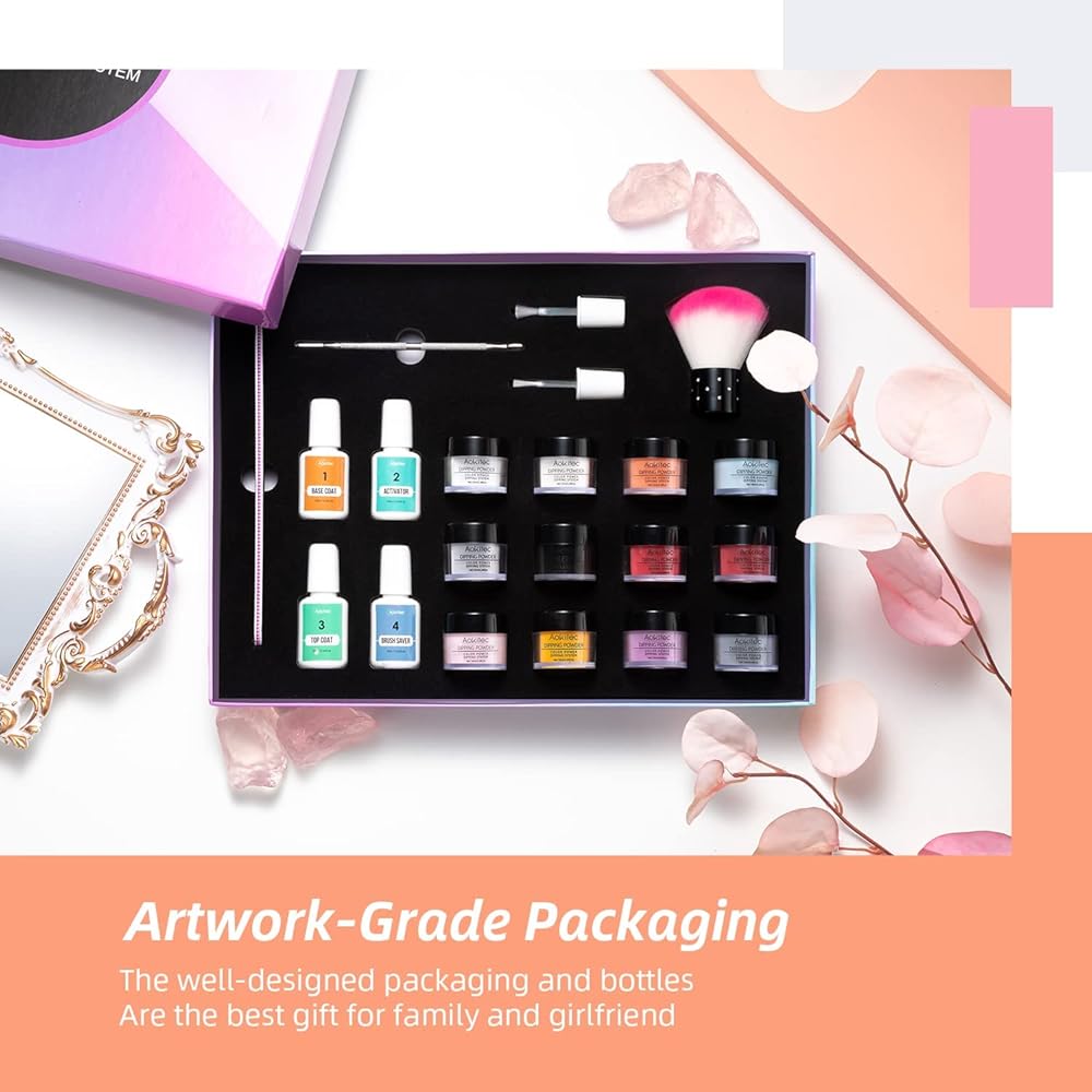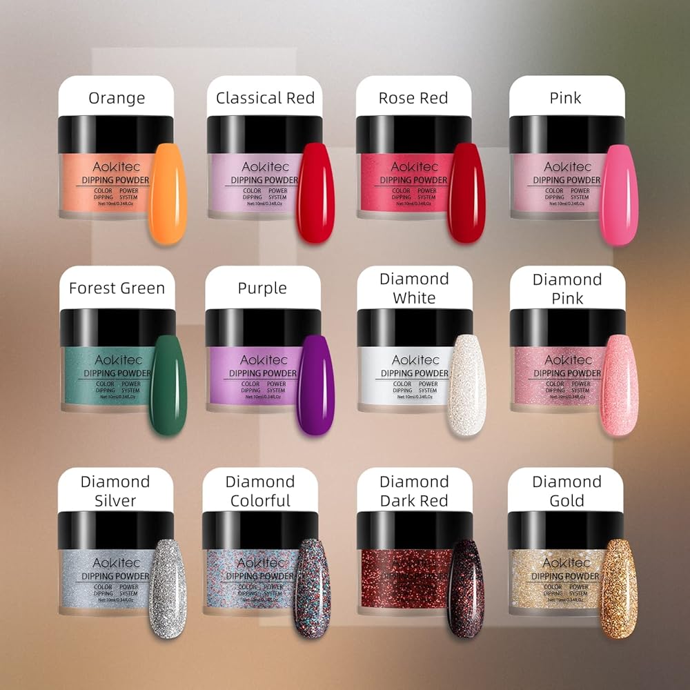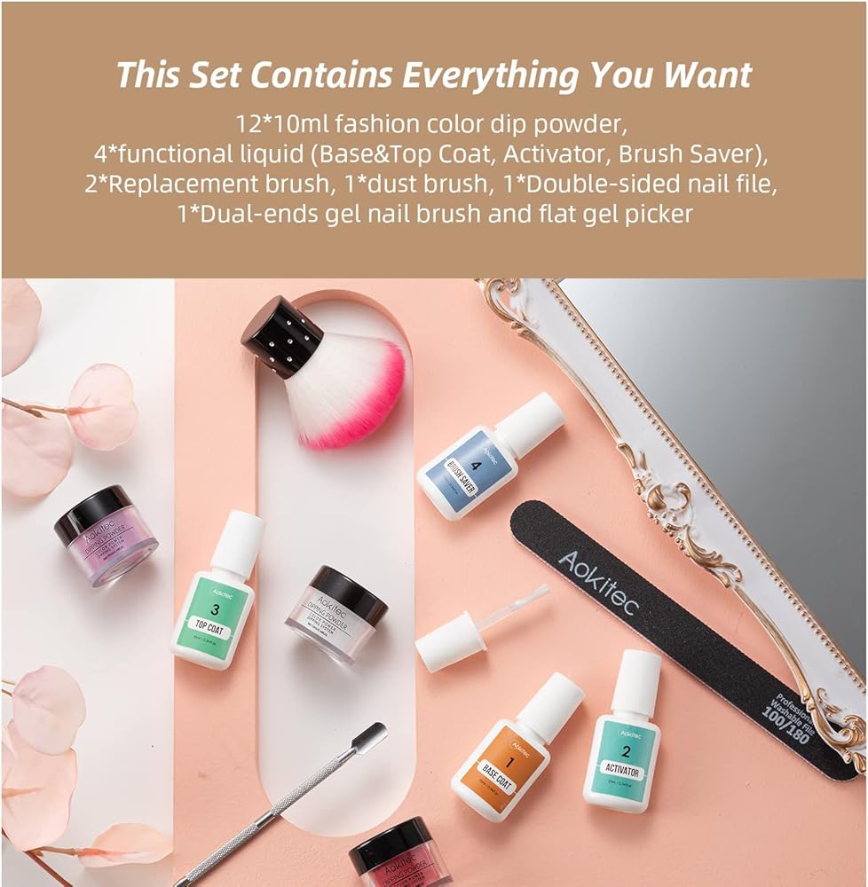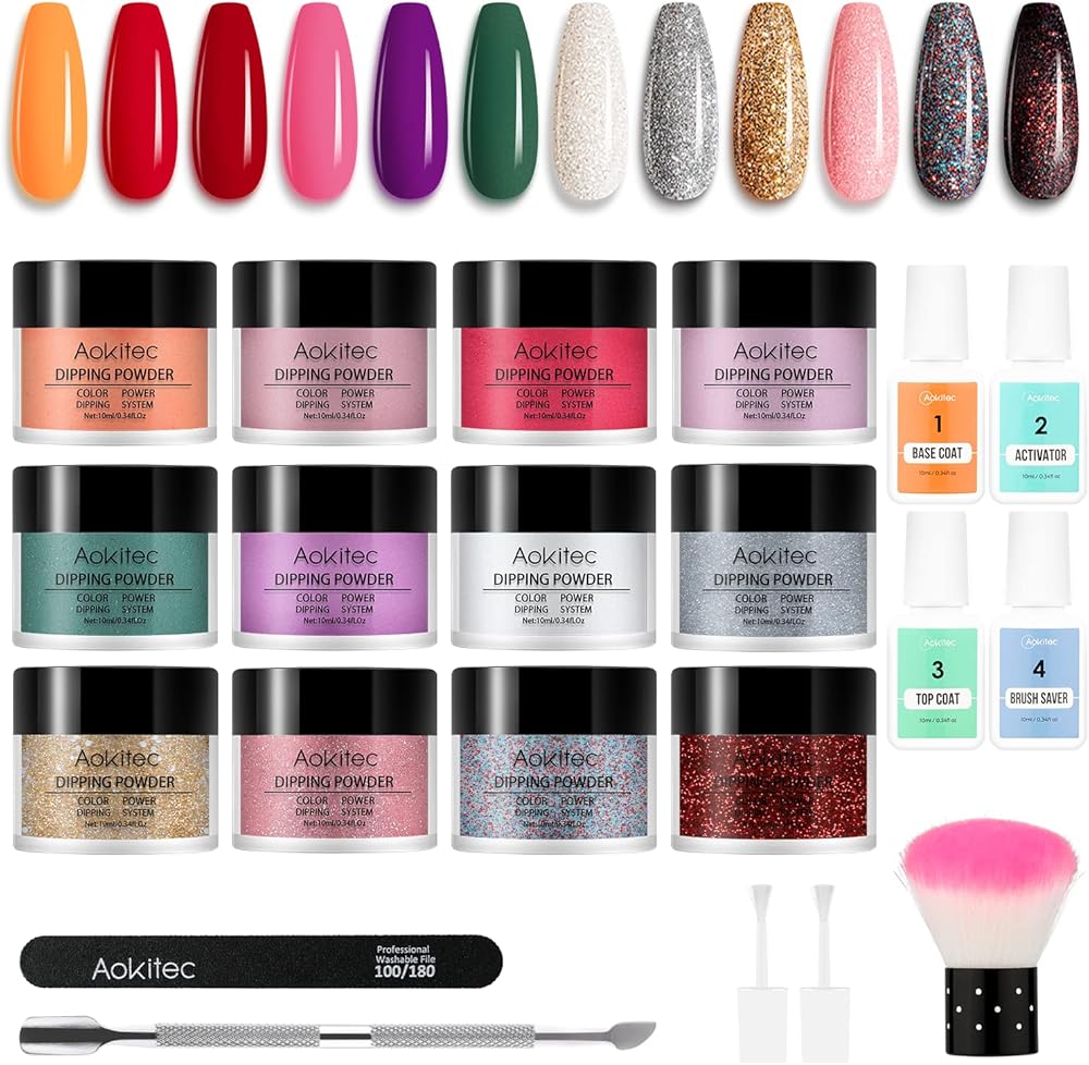 Aokitec 21 قطعة من مسحوق غمس الأظافر للمبتدئين، مسحوق غمس الأظافر 12 لونًا، مجموعة مسحوق جل الأظافر من الأكريليك، مجموعة غمس للمبتدئين