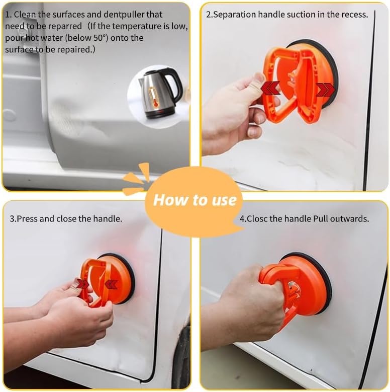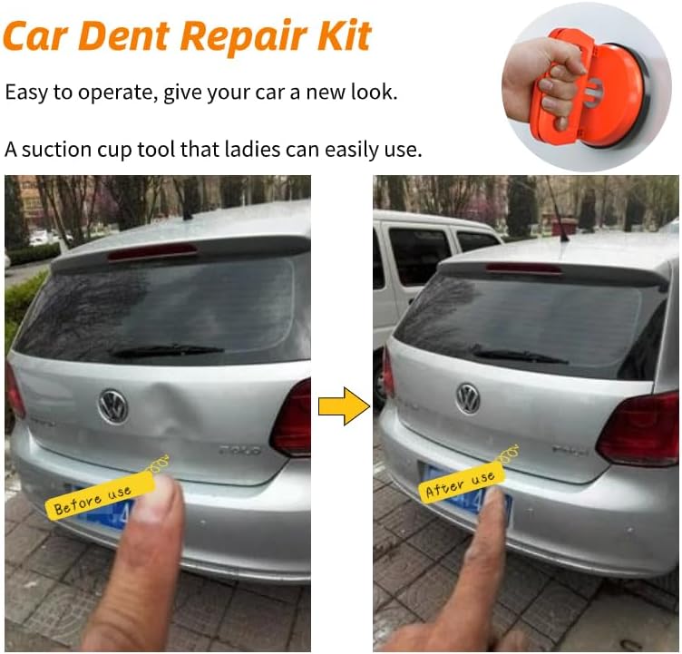 استمتع بسهولة إصلاح الانبعاجات بدون طلاء باستخدام مجموعة أدوات سحب دنت السيارة الخاصة بنا. تشتمل هذه المجموعة على حجمين من أكواب الشفط (4.6 بوصة و2.2 بوصة) لاستيعاب أحجام الانبعاجات المختلفة، مما يضمن ملاءمة مثالية لمجموعة متنوعة من احتياجات الإصلاح. التصميم المريح بمقبض سريع التحرير وقوة شفط قوية تصل إلى 154.3 رطلاً يجعل عملية إزالة الانبعاج سهلة وفعالة.