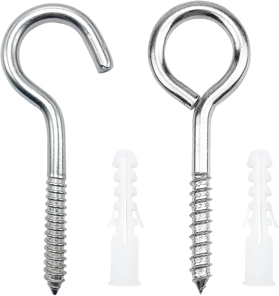 【شديد التحمل】مسامير العين الكبيرة جيدة للغاية لتعليق التطبيقات شديدة التحمل. يمكنك تثبيتها في الجدران الخرسانية باستخدام أنابيب الأنابيب والأخشاب والجدران الجافة والسقف والعديد من الأماكن المختلفة.