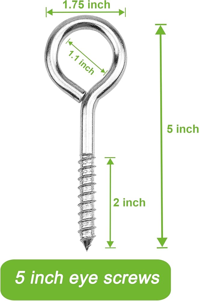 ECKJ 5 بوصة 304 خطافات عين من الفولاذ المقاوم للصدأ، عيون لولبية شديدة التحمل مع أنابيب، مسامير عين كبيرة للخشب، الأرجوحة، كرسي متأرجح، اليوغا، تأمين أسلاك الكابلات للاستخدام الداخلي والخارجي، فتحة ذاتية التنصت