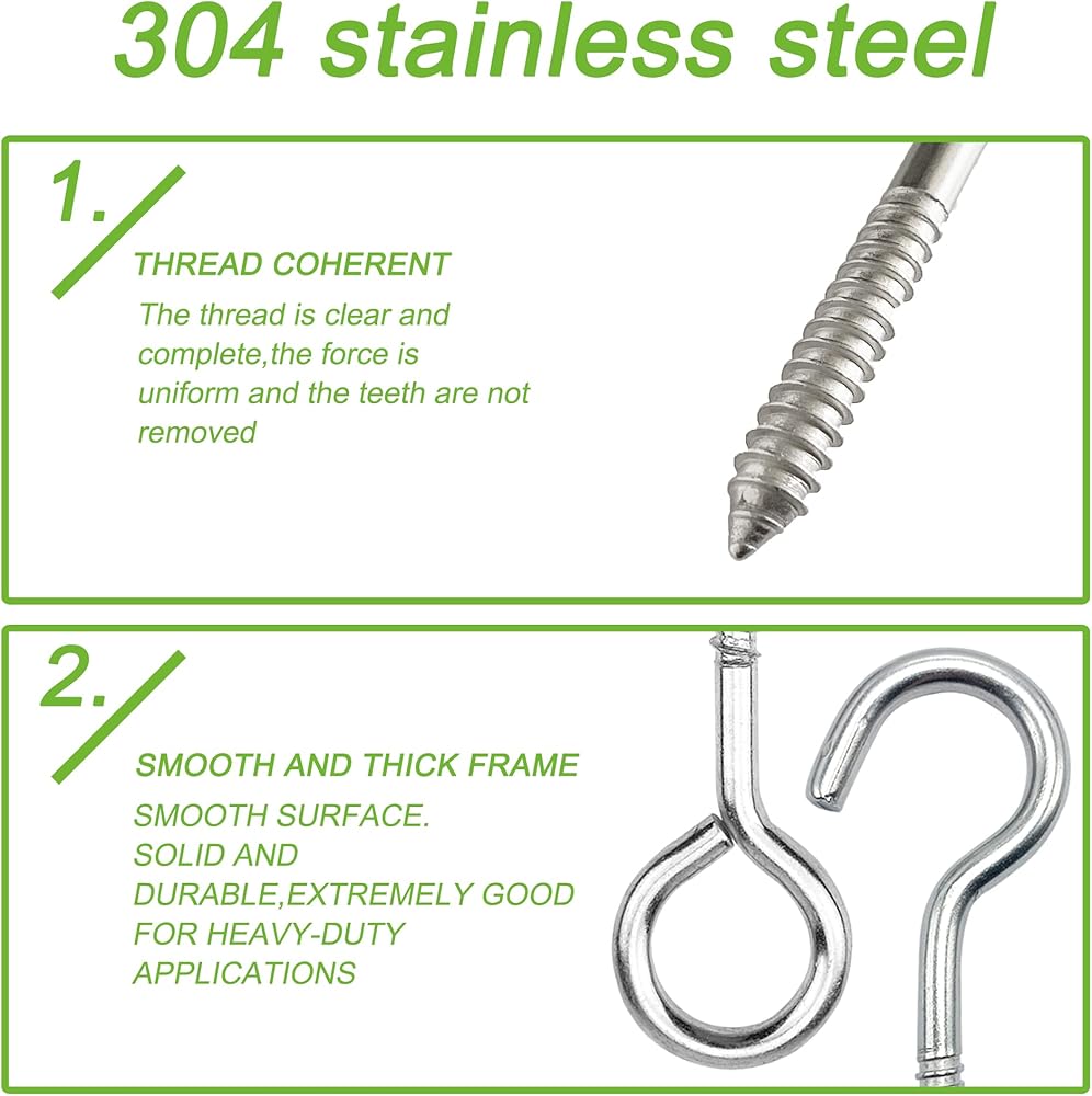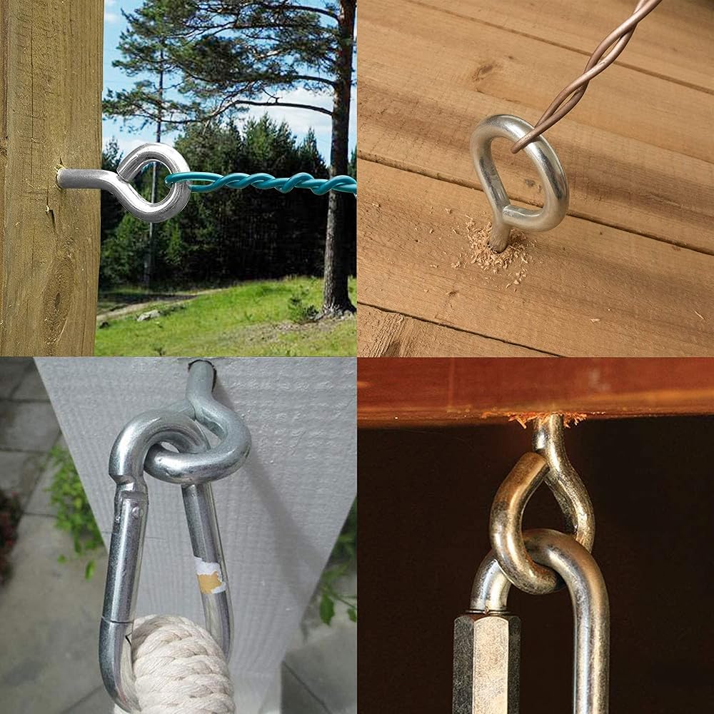 【استخدام على نطاق واسع】يتم استخدام الخطافات اللولبية للربط ورفع الأحمال وتأمين الكابلات والسلاسل والحبال. مثالية للتعليق على الأرجوحة، والأضواء، وخطافات السلم، والأرجوحة، والسلة السلكية، وإكسسوارات صالة الألعاب الرياضية، وأدوات الحديقة، حتى للبحرية والحمام وما إلى ذلك.