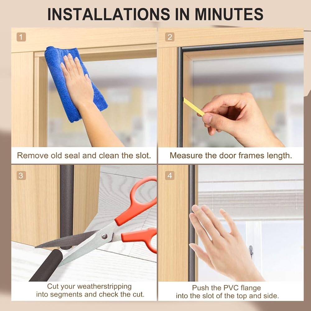 【سهلة الاستخدام】 - من السهل جدًا استخدام شريط الطقس لإطار الباب مع دعامة شبكية قوية مطورة، ويلتصق بقوة، ومقاوم للماء، ولا يتقشر. أولاً، نحتاج إلى قياس طول الفجوة المراد سدها، ثم قطع شريط الطقس إلى الطول المطلوب ولصق الجزء الخلفي اللاصق على أي سطح نظيف.