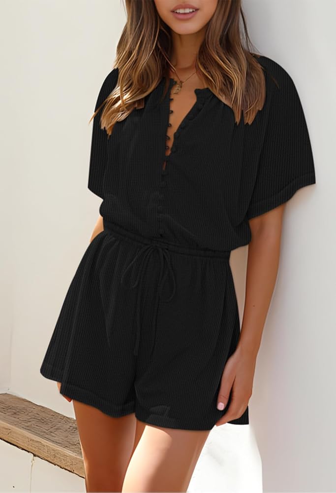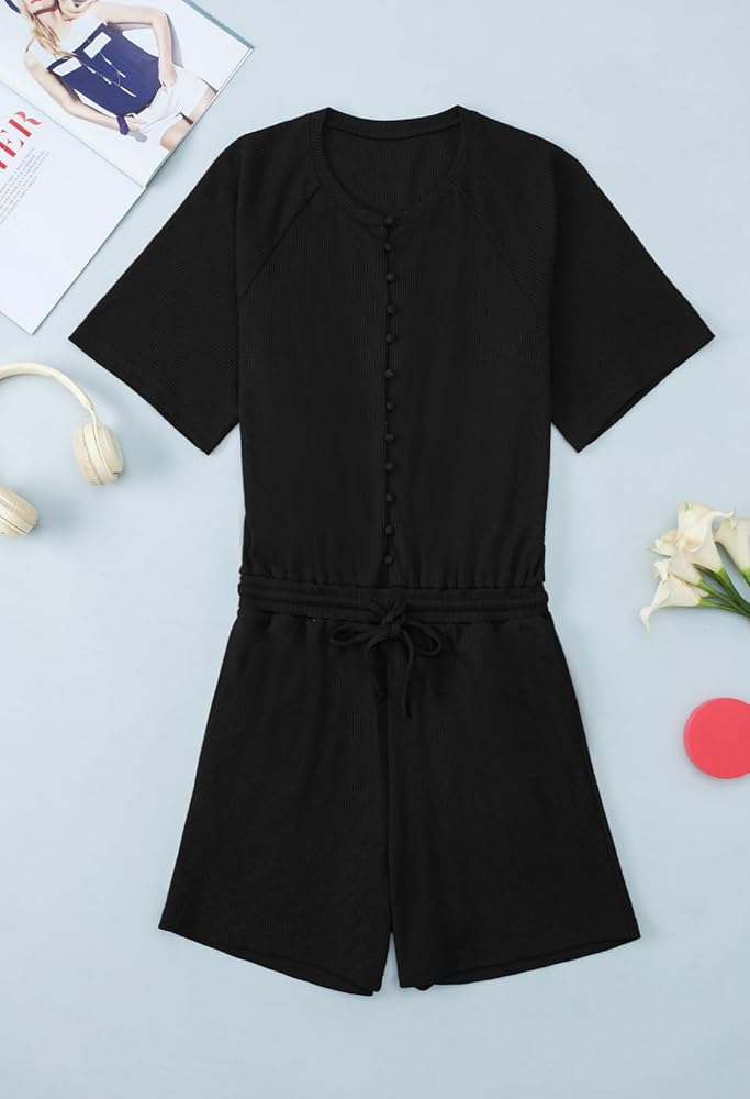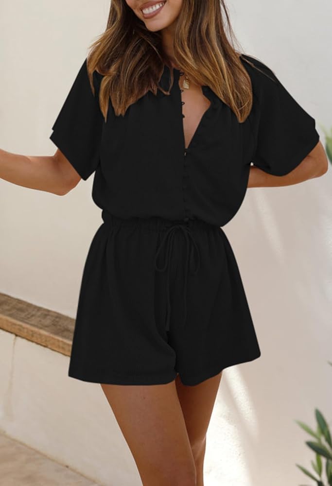 Fixmatti Short Sleeve Romper One Piece Button Up Jumpsuits for Women Summer Shorts Rompers