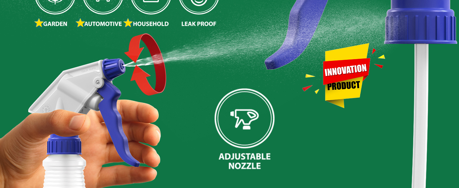 • مانع للتسرب: متين وعالي الجودة وسهل الاستخدام. ما عليك سوى تقليم أنبوب الغمس ليناسب الزجاجة، ولف الفوهة إلى المخرج المطلوب، ثم تثبيتها على الزجاجة سعة 16 أونصة أو 24 أونصة أو 32 أونصة، ثم الضغط على الزناد والرش بعيدًا.