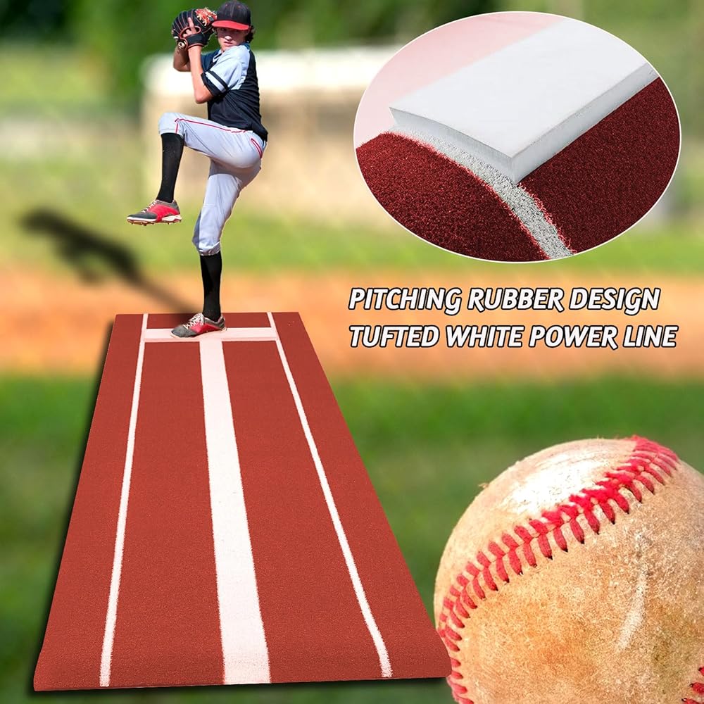 Supvision 10' X 3' Softball Baseball Pitching Mat Softball Pitching Rubber with 5mm Foam Power Line Durable and Non-Slip Softball Pitchers Pitching Mound