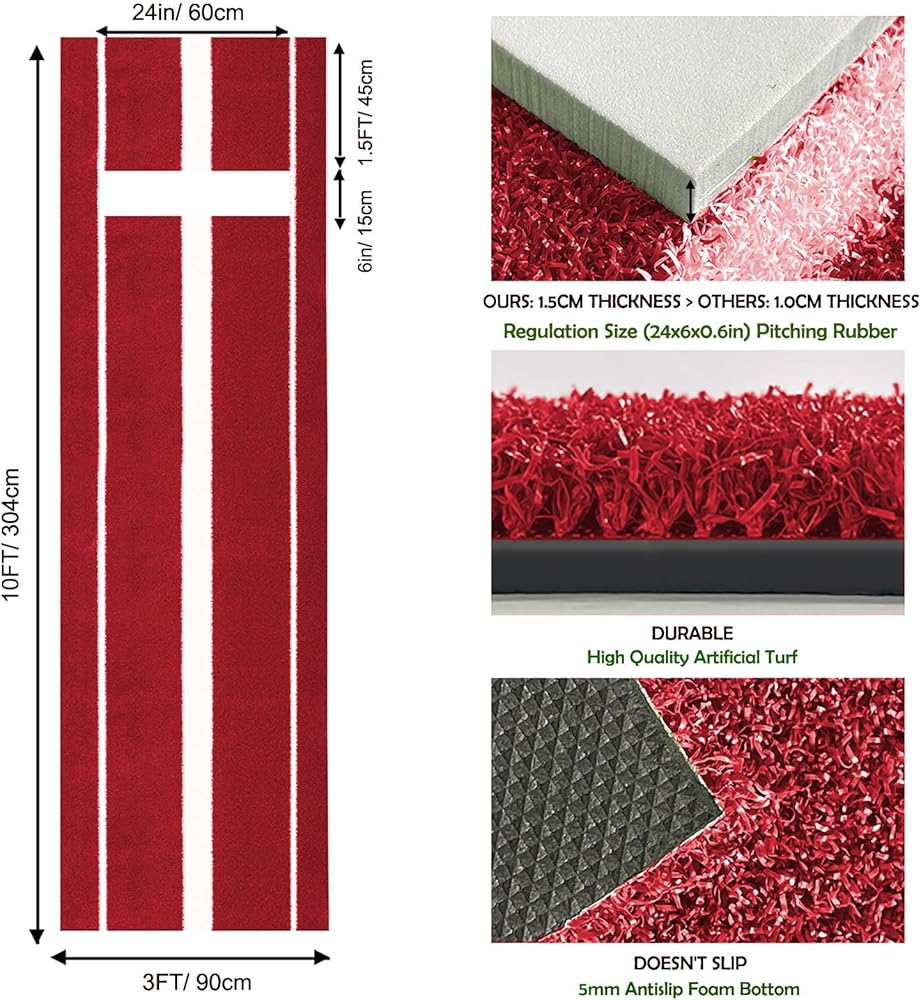 Premium Quality: The pitching rubber is made from PP material with a grass density of 68000 needles per square meter and a grass height of 12mm. This ensures durability and a realistic pitching experience.
