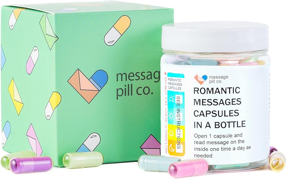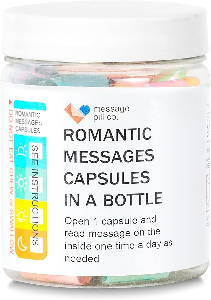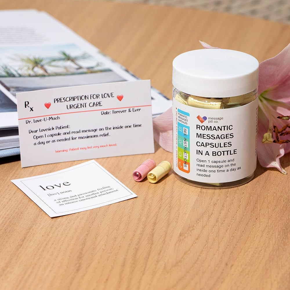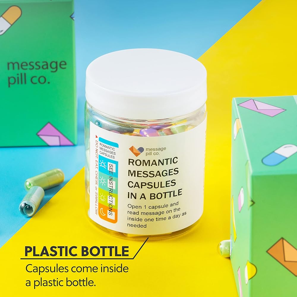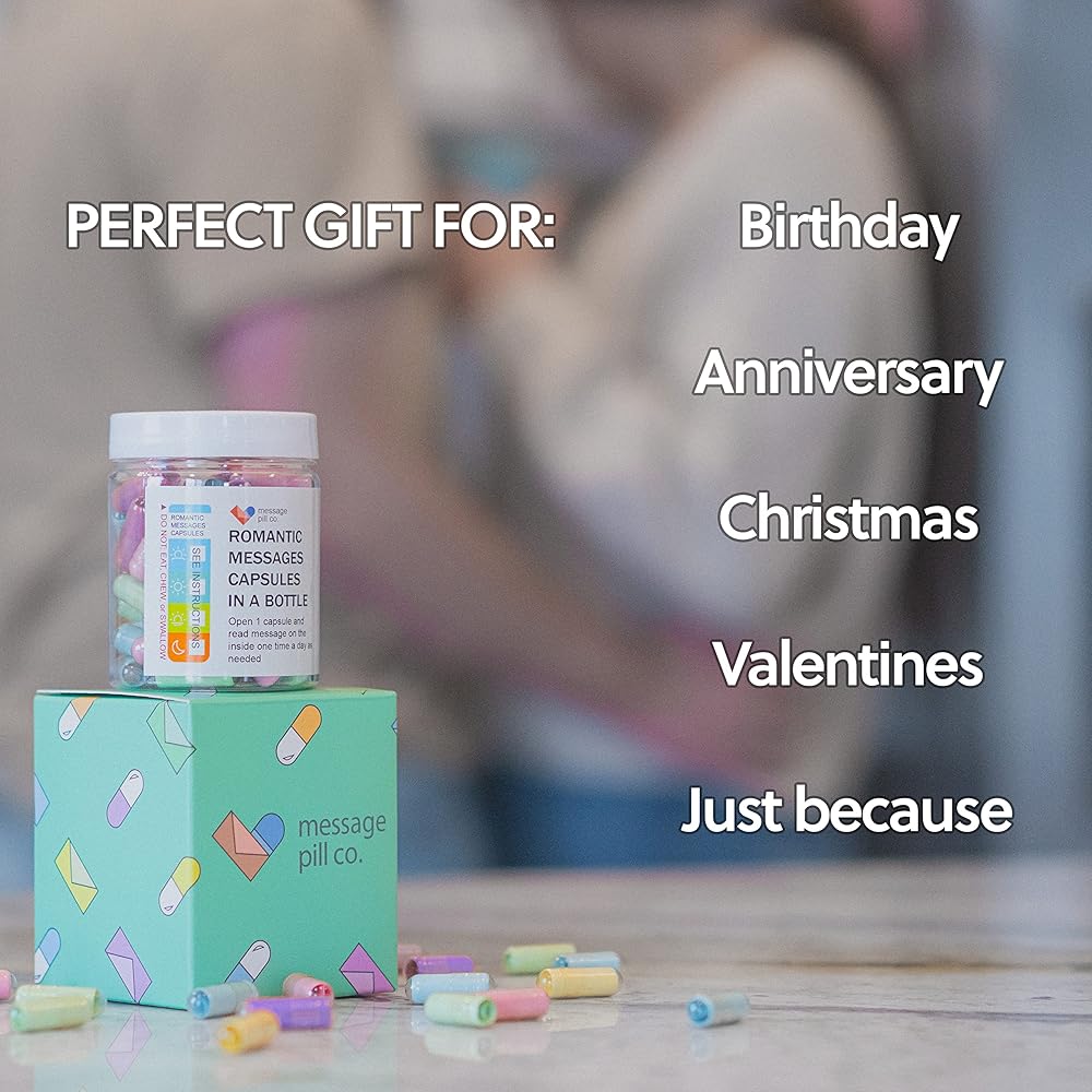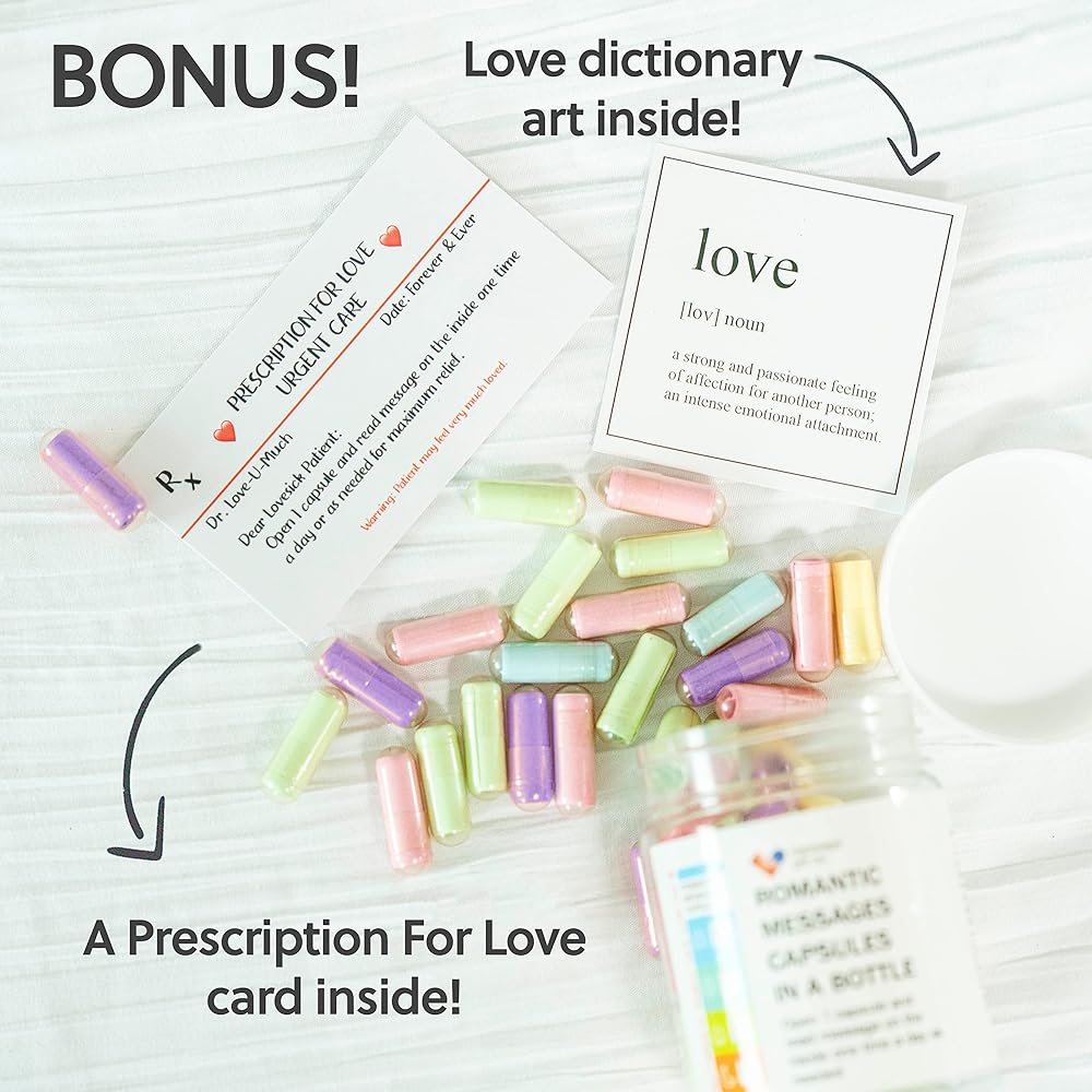 رسالة بأحرف كبسولة في زجاجة - هدايا للأزواج، ملاحظات حب له أو لها، هدية رومانسية رائعة لصديقتك وصديقها - تتضمن 50 قطعة من رسائل حبوب الحب المكتوبة في زجاجة