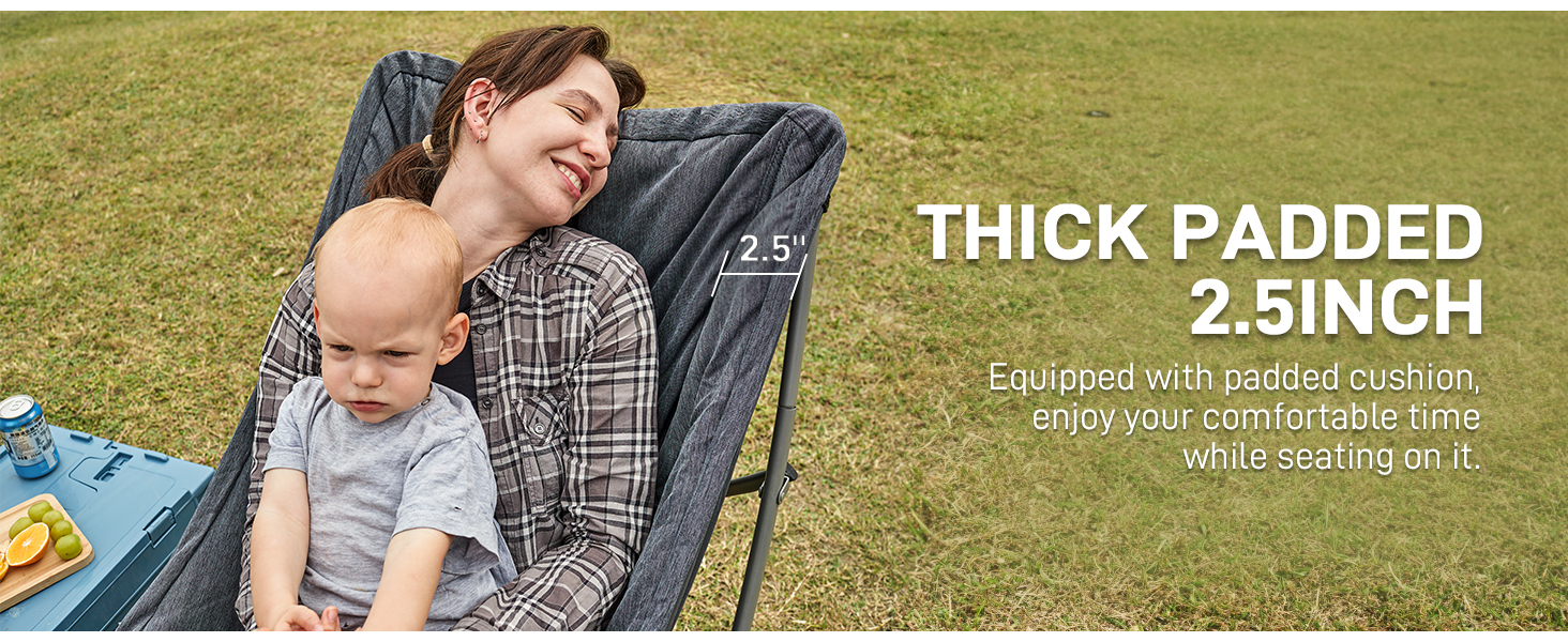 【𝐇𝐢𝐠𝐡 𝐁𝐚𝐜𝐤 & 𝐏𝐚𝐝𝐝𝐞𝐝】استمتع بمقاعد ناعمة ومريحة مع كرسي التخييم القابل للطي الذي يتميز ببطانة سميكة 2.5 بوصة وبوليستر متين 600D. يتيح لك التصميم الخلفي المرتفع لكرسي الحديقة مقاس 27.6 بوصة إراحة رأسك ورقبتك براحة.