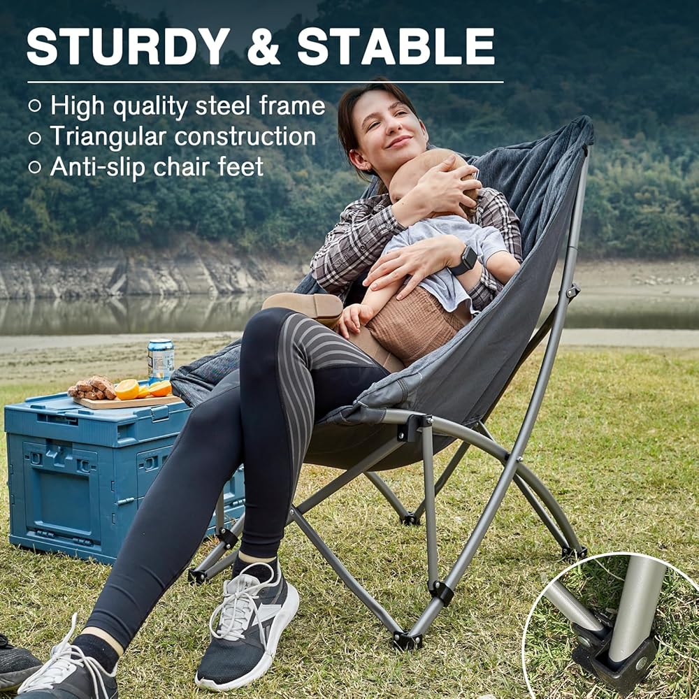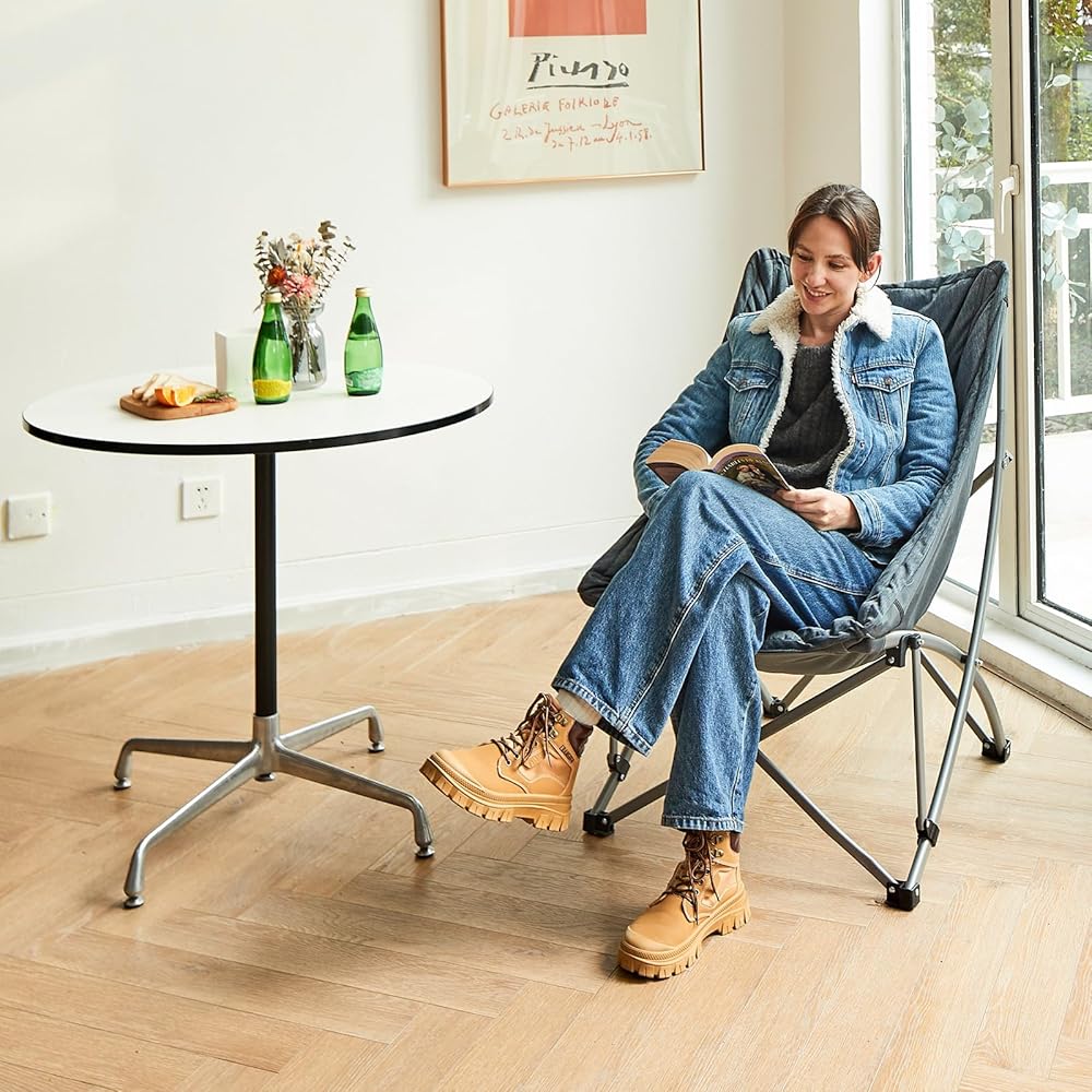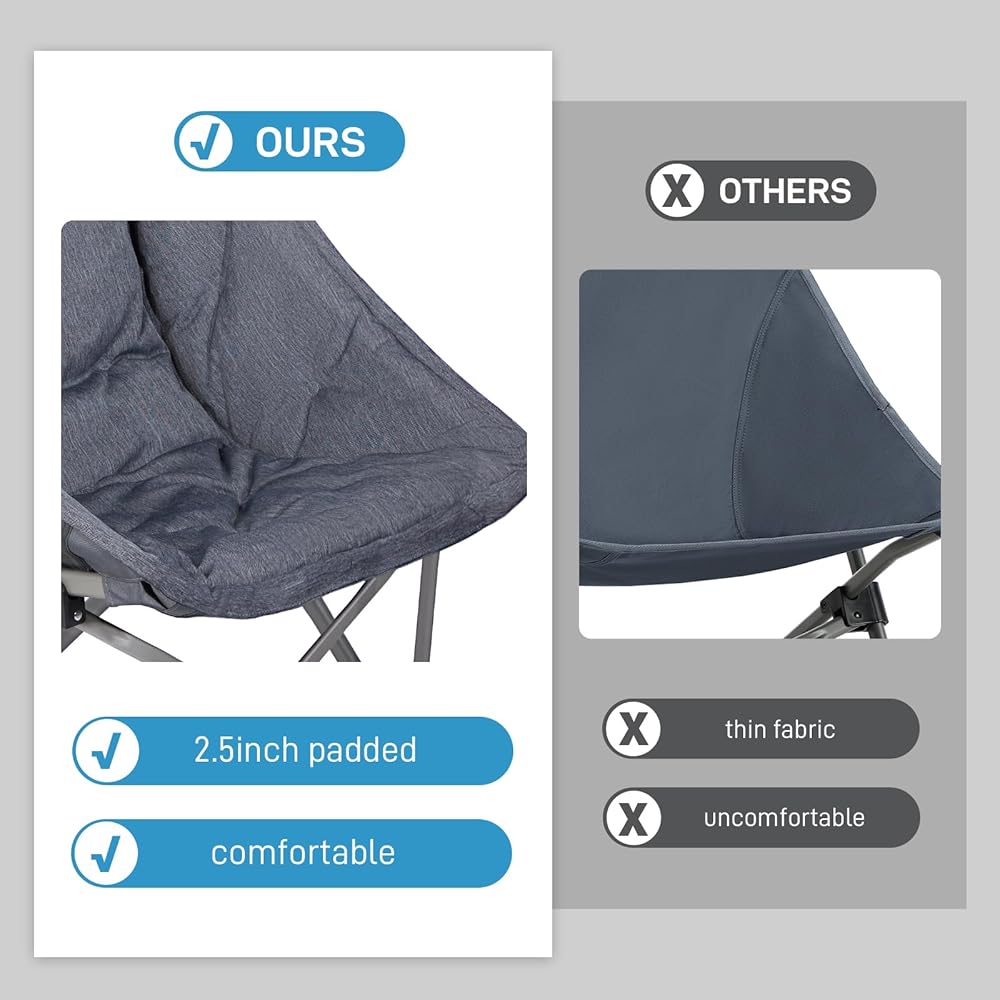 كراسي تخييم قابلة للطي من أي وقت مضى للبالغين مع ظهر مرتفع، كراسي سميكة مبطنة قابلة للطي، كرسي صحن القمر المحمول، كراسي حديقة مريحة قابلة للطي، كراسي طعام فاخرة، تدعم 250 رطلًا