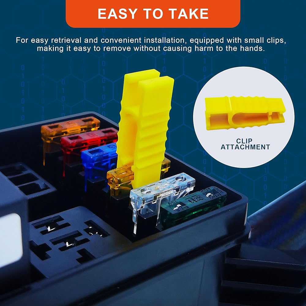 حزام أسلاك أنيق: يأتي صندوق مصهر مرحل السيارة هذا مزودًا مسبقًا بجميع الأسلاك الضرورية ومُسمى بأرقام الأسلاك المقابلة. حتى تتمكن من الاتصال مباشرة بسيارتك. أكثر ملاءمة للتثبيت والاستخدام.