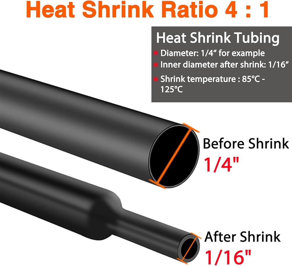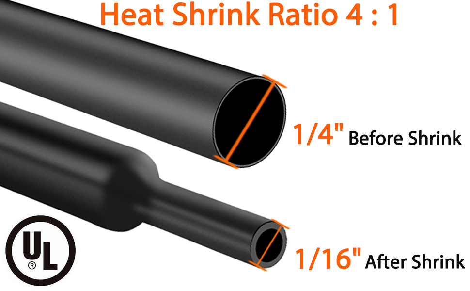 【مادة فاخرة ونسبة انكماش 4:1】: أنبوب الانكماش الحراري الصناعي الخاص بنا مصنوع من مادة البولي أوليفين عالية الجودة، ومعتمدة من شهادة UL. تعمل أنابيب الانكماش الحراري العازلة 4:1 على حل مشكلة عدم الانكماش بنسبة 2:1 بشكل محكم بما فيه الكفاية كما أن لديها نسبة انكماش أعلى من 3:1، ويمكن للأنابيب الصديقة للبيئة أن تنكمش حتى 1/4 من قطرها الأصلي وتوفر إغلاقًا محكمًا. لعزل طويل الأمد.