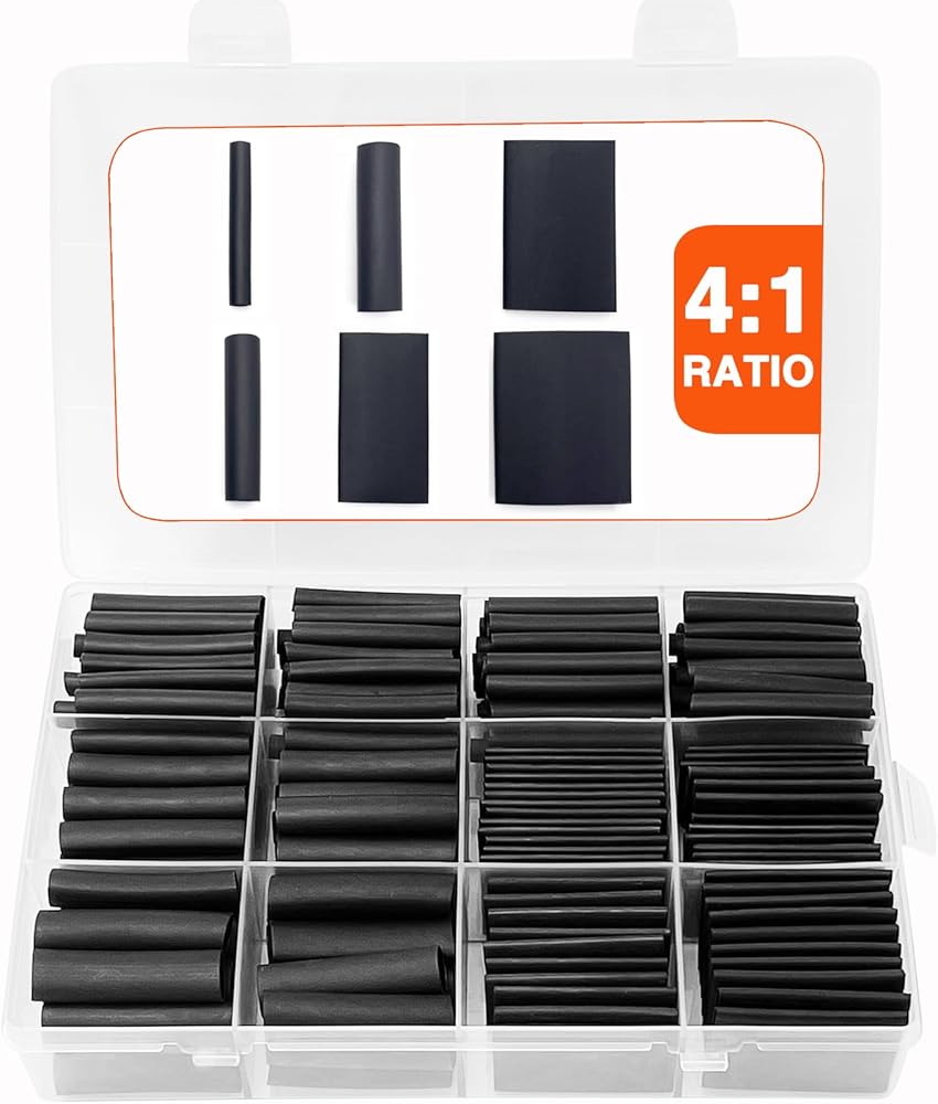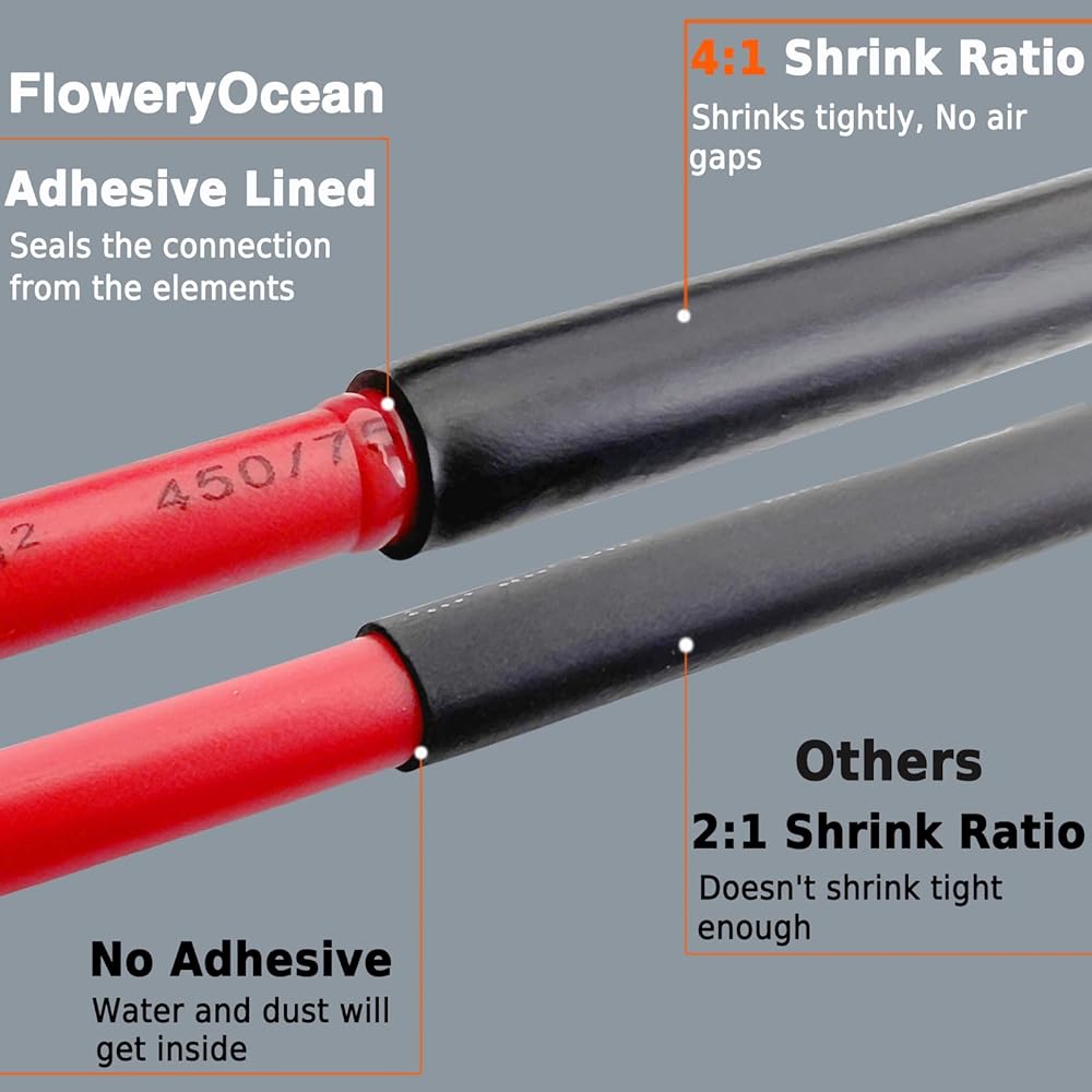 مجموعة أنابيب الانكماش الحراري 258 قطعة من FloweryOcean - مبطنة بمادة لاصقة بنسبة 4:1، غلاف منكمش من الدرجة البحرية مقاوم للماء، أنابيب صناعية قابلة للانكماش بالحرارة - أسود