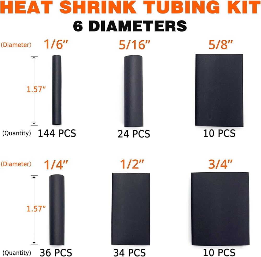 مجموعة أنابيب الانكماش المكونة من 258 قطعة: أنابيب انكماش بـ 6 مقاسات، تشمل: 1/6 بوصة (144 قطعة)، 1/4 بوصة (36 قطعة)، 5/16 بوصة (24 قطعة)، 1/2 بوصة (34 قطعة) قطعة)، 5/8 بوصة (10 قطع)، 3/4 بوصة (10 قطع). يبلغ طول جميع الأنابيب البحرية المنكمشة بالحرارة 1.57 بوصة. يمكن أن تناسب أنابيب الانكماش الحراري الصناعية الخاصة بنا متطلبات العمل المختلفة.