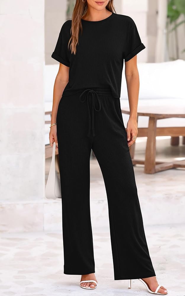 المطابقة: المجموعة المطابقة هي أساسيات خزانة الملابس النسائية! هذه المجموعة النسائية المكونة من قطعتين من الملابس/المجموعات المحبوكة يمكن أن تتطابق مع النعال والكعب والأحذية الرياضية. تصميم سهل ومريح لارتداء ملابس مريحة وسهلة الاستخدام