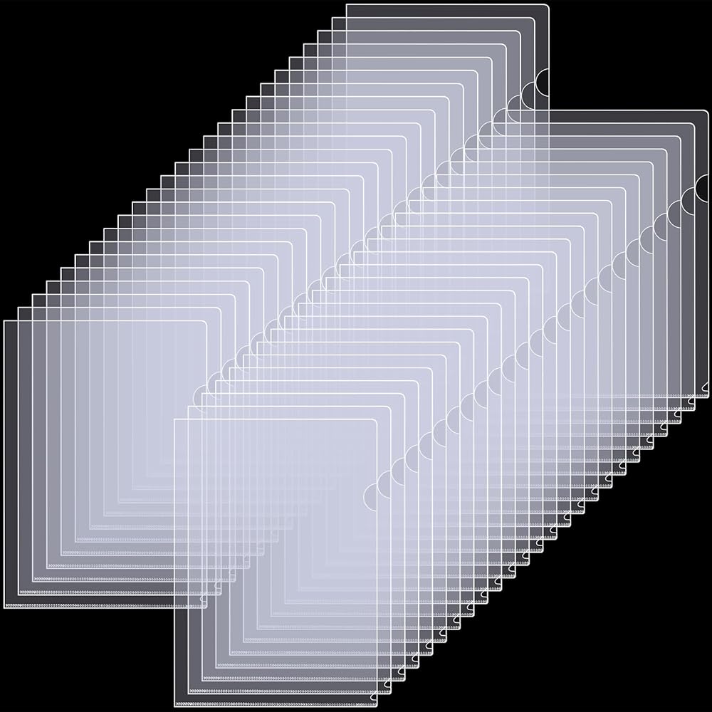 50 حزمة من المجلدات البلاستيكية من النوع L، جيوب مشروع شفافة، مجلد مستندات شفاف لأكمام السترة الورقية بحجم حرف A4