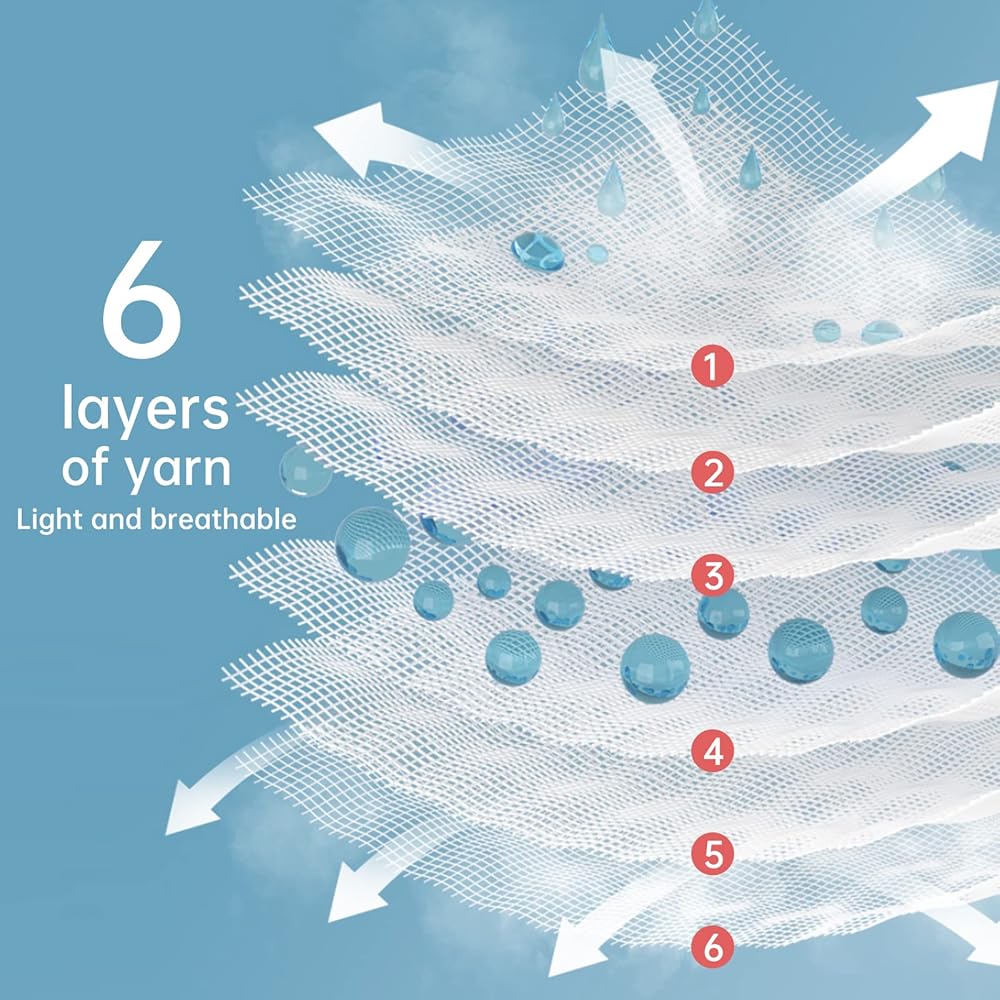 【فائقة الامتصاص】تحتوي مناديل الموسلين للأطفال من فيفيلاند على 6 طبقات من القماش، عندما يسيل لعاب طفلك أو يستحم أو ترضعينه، فهي مريحة لمسح الفم والجسم.