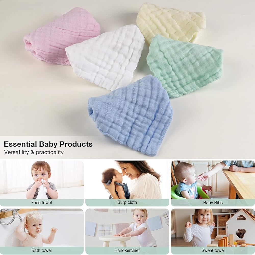 【قطن الموسلين】مناشف أطفال من قطن الموسلين بنسبة 100%، وجميع مناشف الأطفال الطبيعية، رائعة لبشرة طفلك الحساسة.
