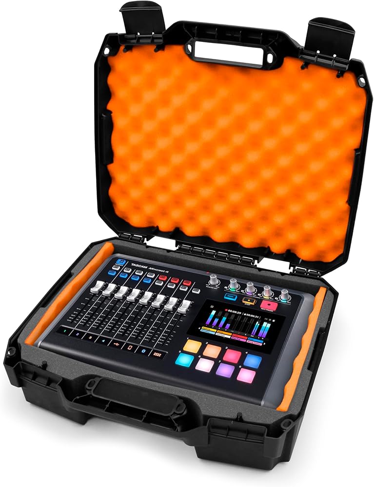 CASEMATIX Travel Case Compatible with Tascam Mixcast 4 Podcast Studio Mixer in Custom Foam - Fits Streaming Audio Recorder and Accessories with Orange Foam - Includes Case Only