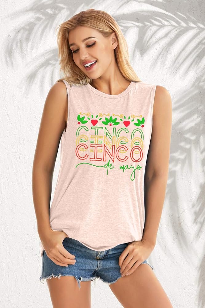 FEATURES:This 5th May Shirt worn when preparing for the Mexican Carnival party,letter tank tops, sleeveless, crewneck, Great Mexican holiday for the American and Mexican people
