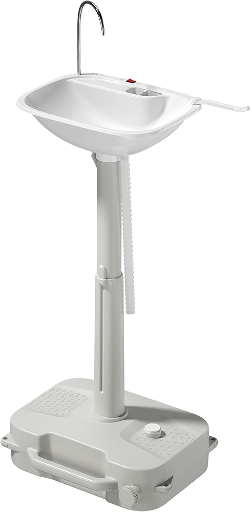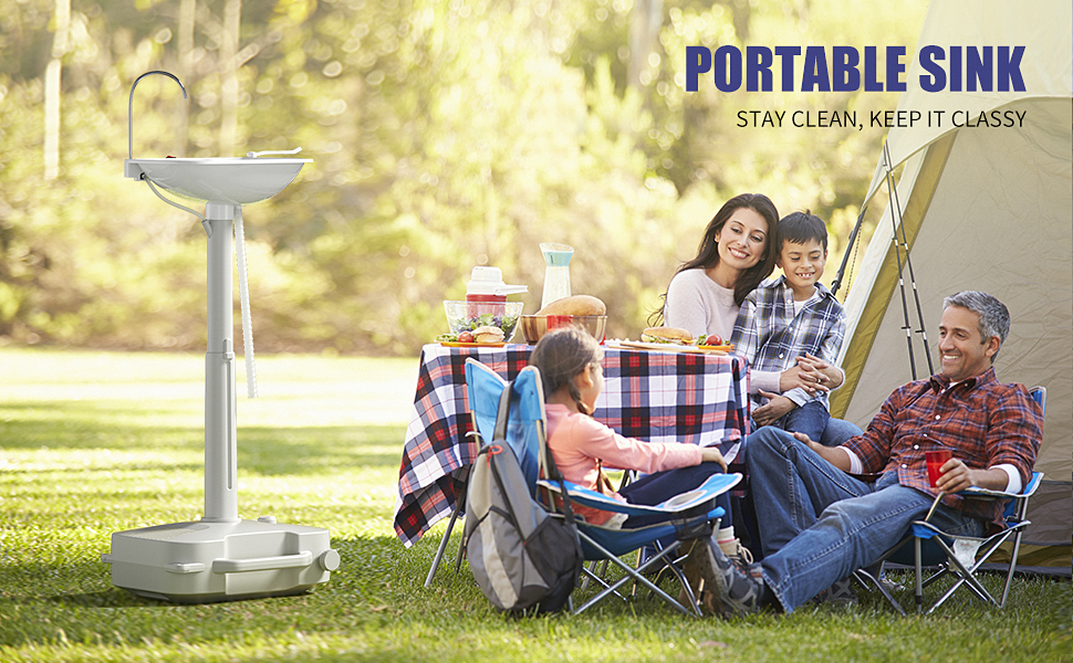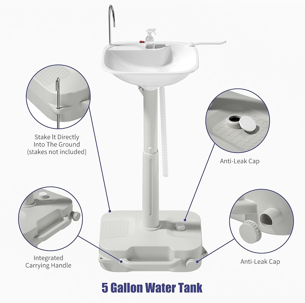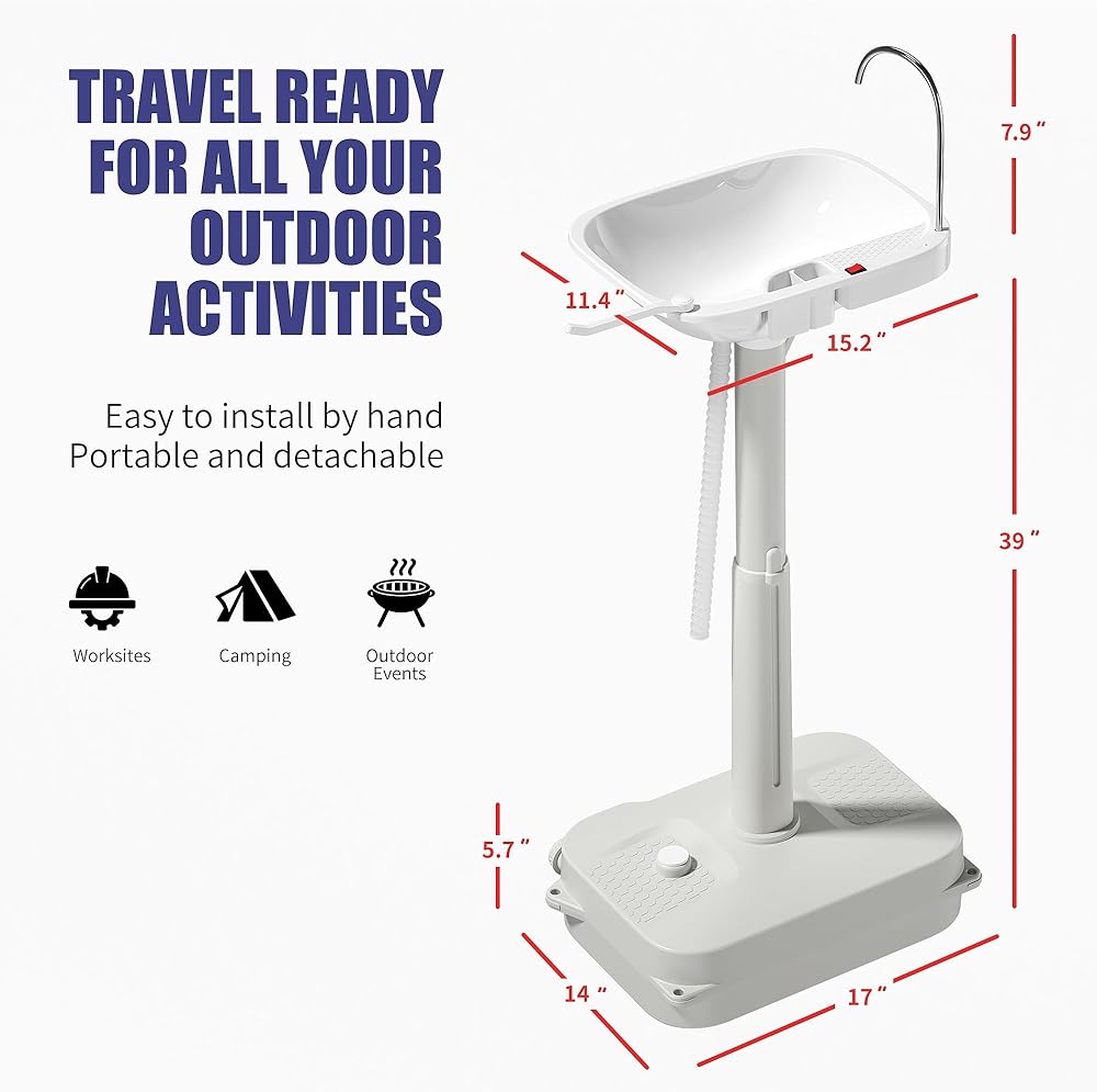حوض محمول خارجي - محطة تنظيف متعددة الاستخدامات تتميز بحوض كبير بقاعدة وخزان مياه سعة 17.6 لتر، مثالية لحفلات الفناء الخلفي والنزهات وحفلات الشواء والمناسبات والتخييم ومواقع العمل والمشي لمسافات طويلة والصيد والأنشطة الترفيهية الأخرى.