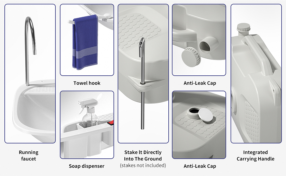هيكل متين وآمن للطعام - مصنوع من مادة البولي بروبيلين + البولي إيثيلين، ويتحمل الظروف الجوية القاسية والاستخدام طويل الأمد. يشتمل على مقبض مدمج وتركيبات معدنية وخرطوم تصريف مرن. يمكن إعادة تدوير المياه المستخدمة، لتلبية احتياجات الأفراد المهتمين بالبيئة. آمن لغسل اليدين وتنظيف الطعام وحتى الشرب.