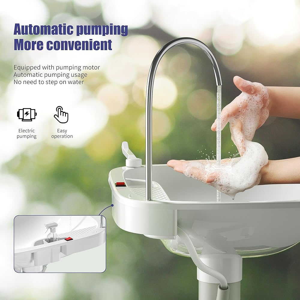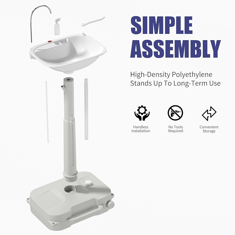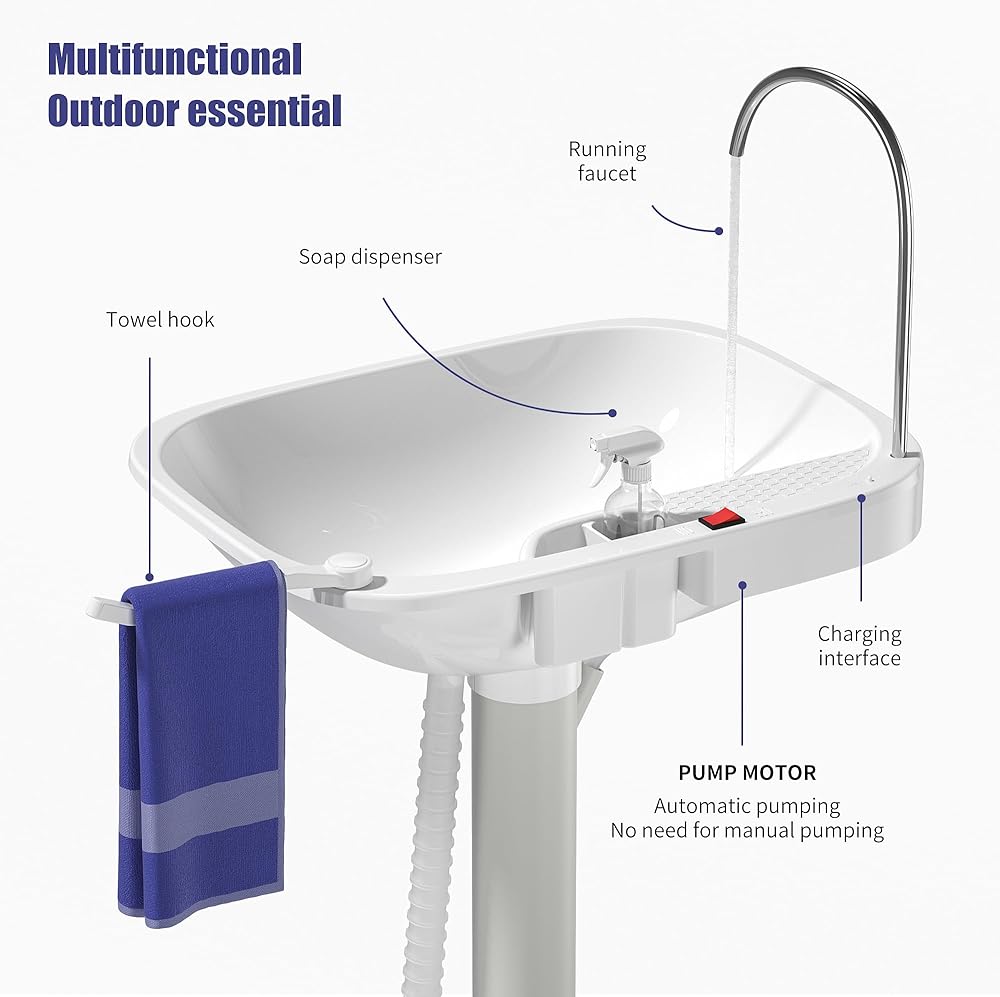 التخييم المحمول من بي فيرست للمناسبات الخارجية والتجمعات ومواقع العمل وحوض التخييم مع حامل المناشف وموزع الصابون - مضخة مياه أوتوماتيكية تتميز بحامل حوض غسيل يدوي مع عجلات دوارة