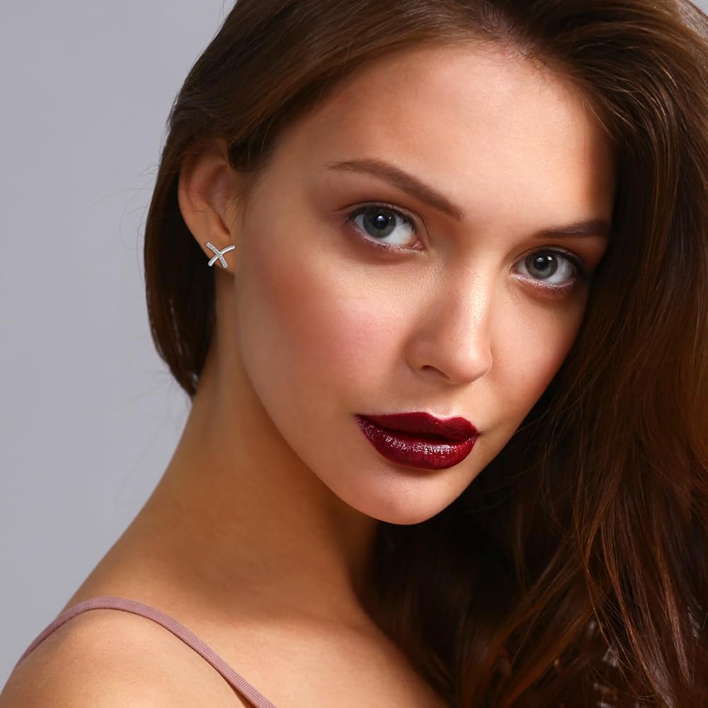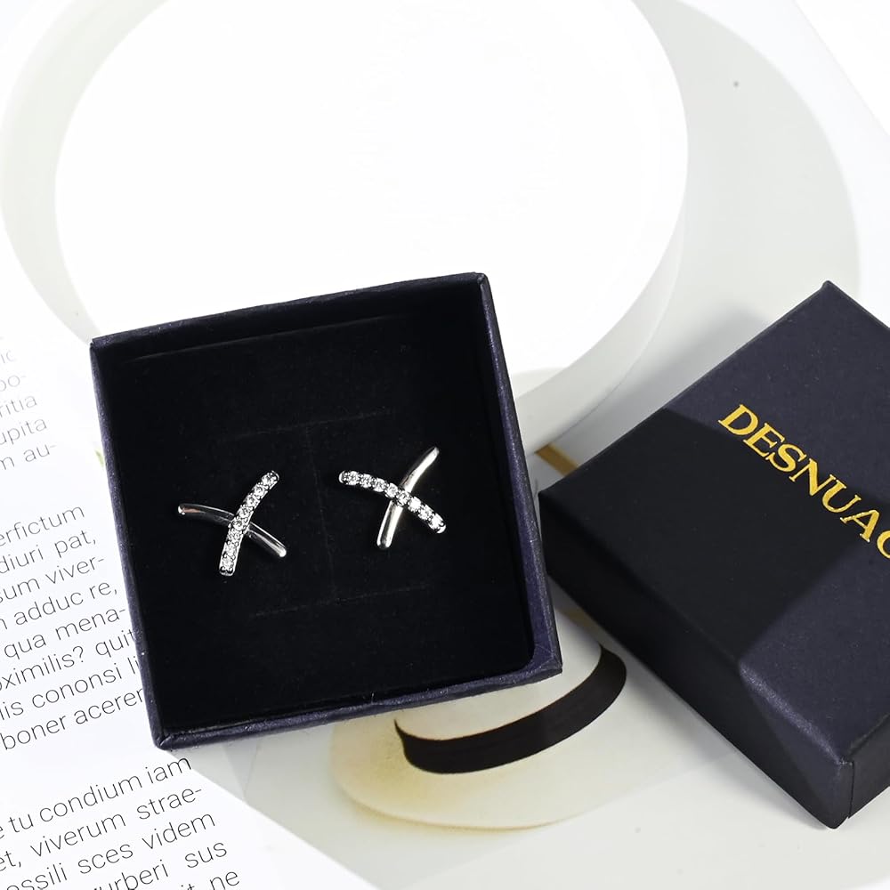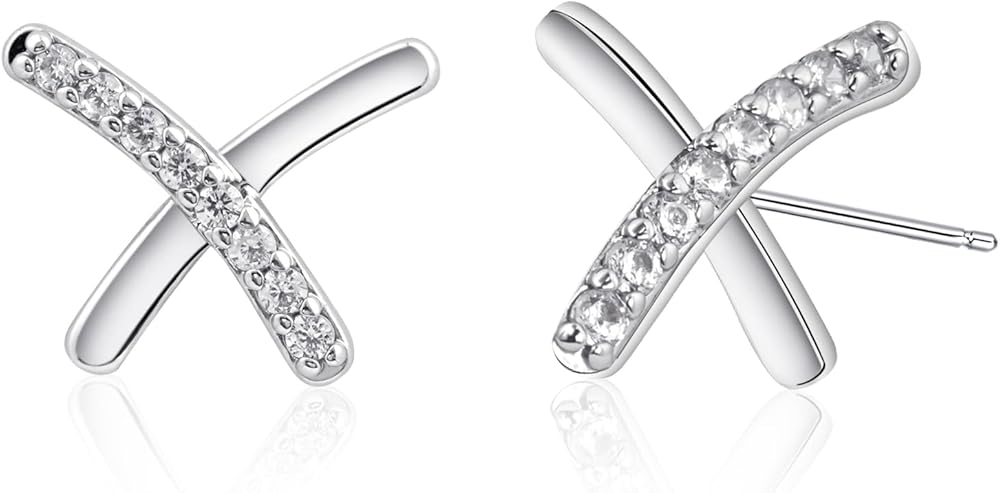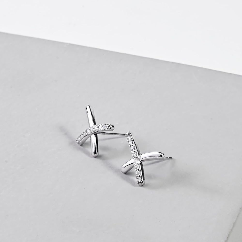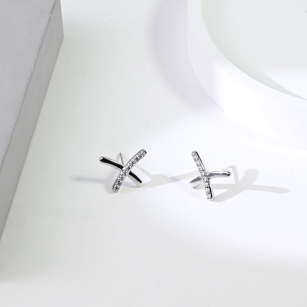 • [High Quality] The X shape minimalist earrings studs embedding beautiful zircons and electroplated with a 925 sterling silver. It will not fade or rust. It is hypoallergenic and preventing from ear infection, you can wear this silver studs earrings even your ears are sensitive. 100% free from BPA, lead, nickel and cadmium.