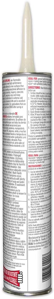E6000 is a tough, flexible and highly versatile rubber-based compound that exhibits exceptional adhesive and sealant qualities. Among the strongest single component, multi-purpose adhesives and sealants available for industrial applications, E6000 outperforms silicones, acrylics and rubber cements because it adheres to more surfaces with greater durability. It provides a superior bond on stubborn porous and non-porous substrates and maintains its bond in cold temperatures and on items subject to vibration.