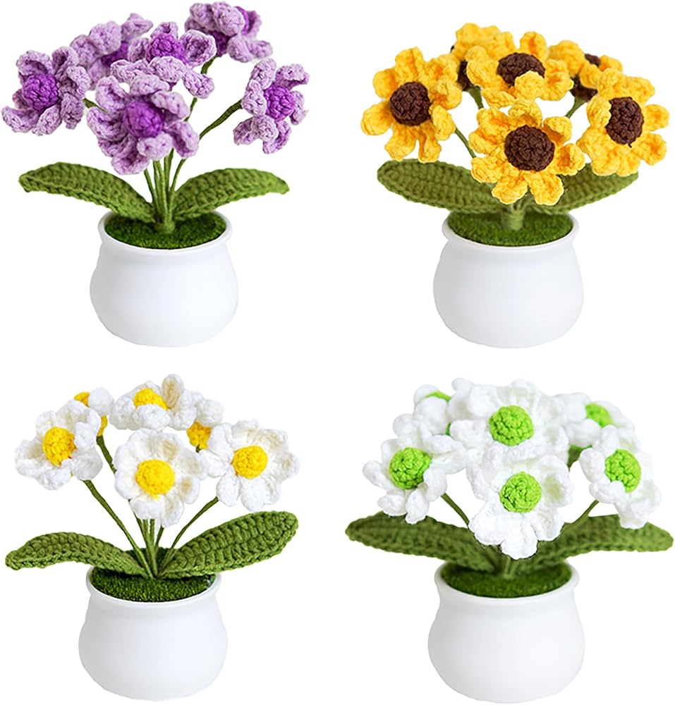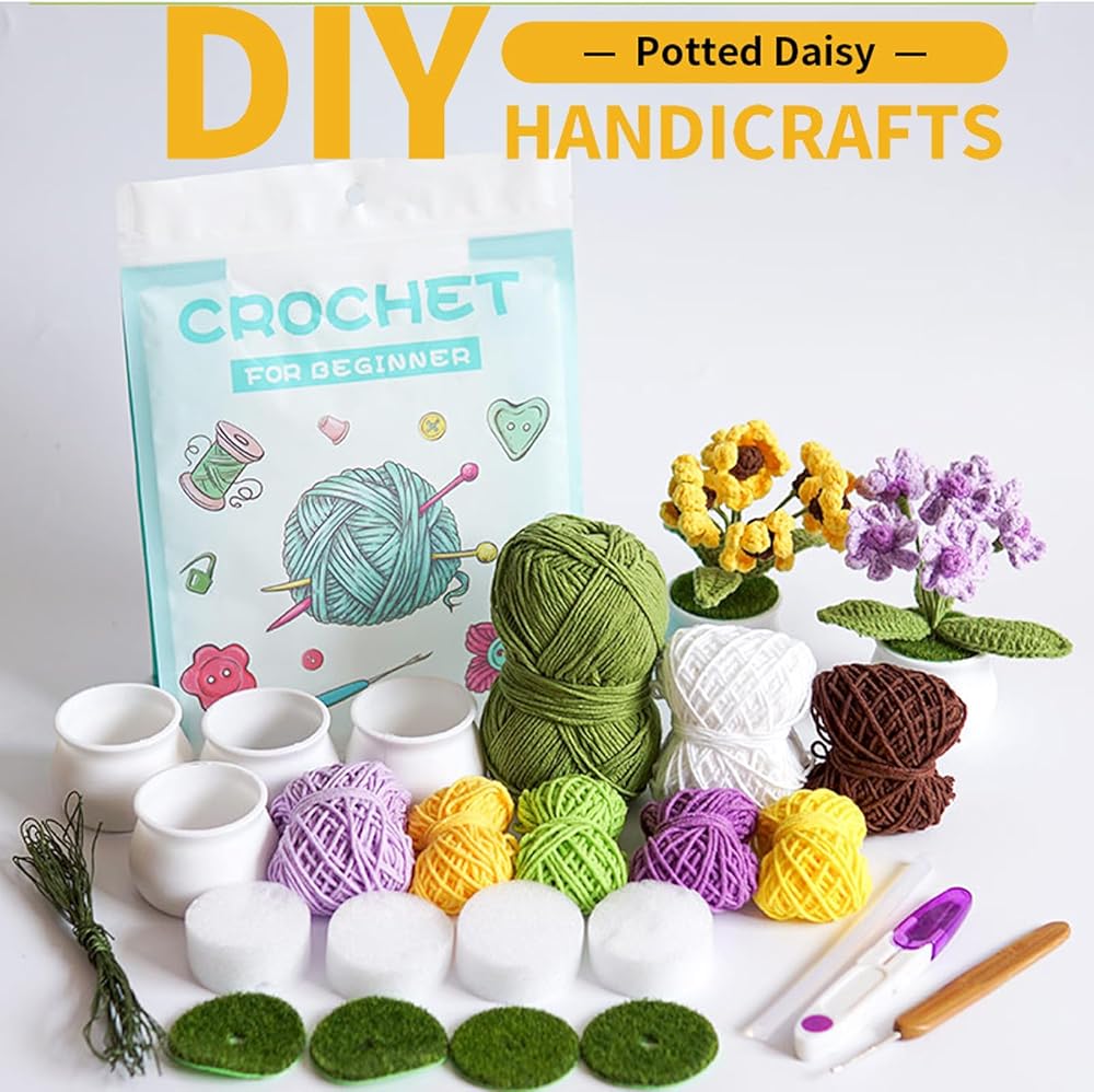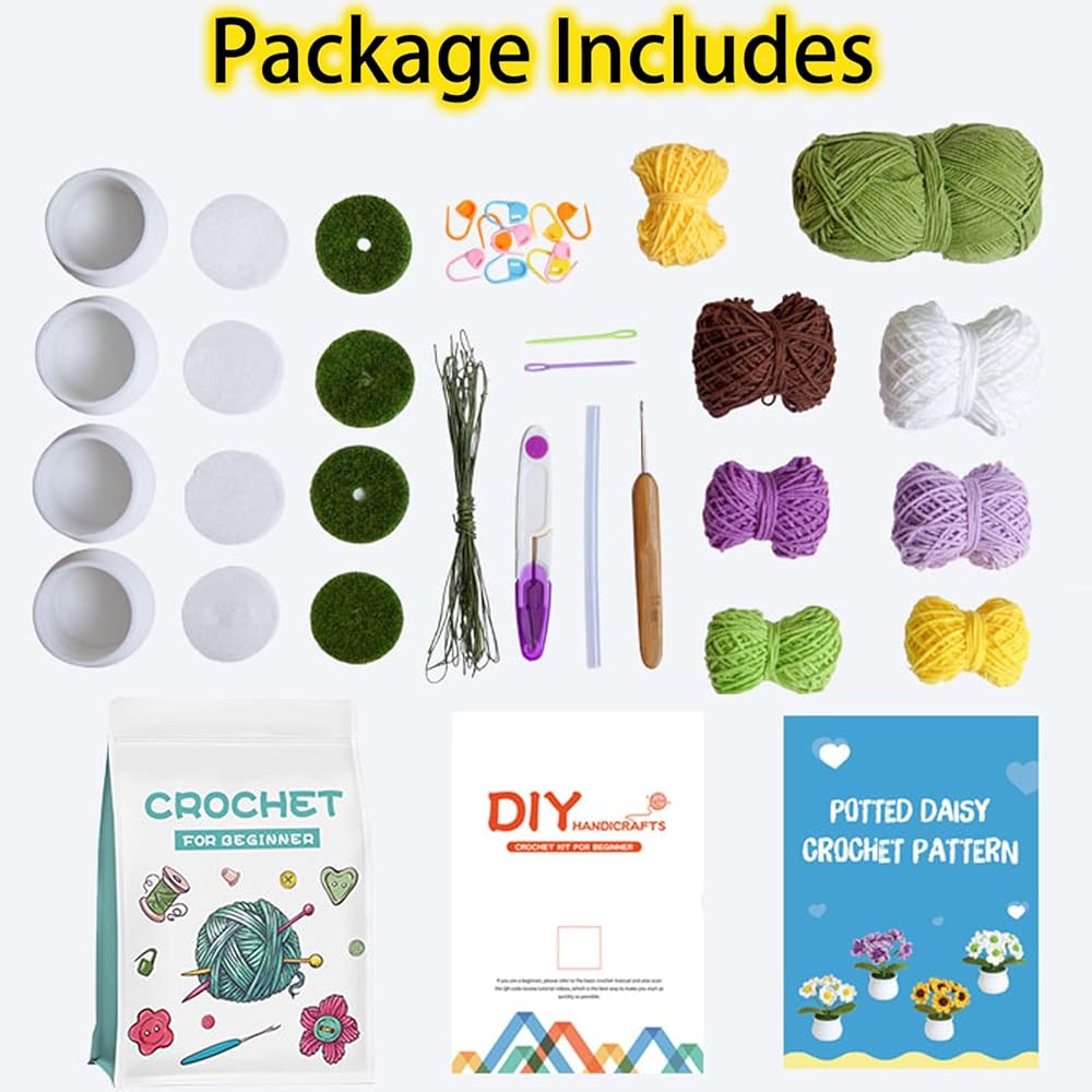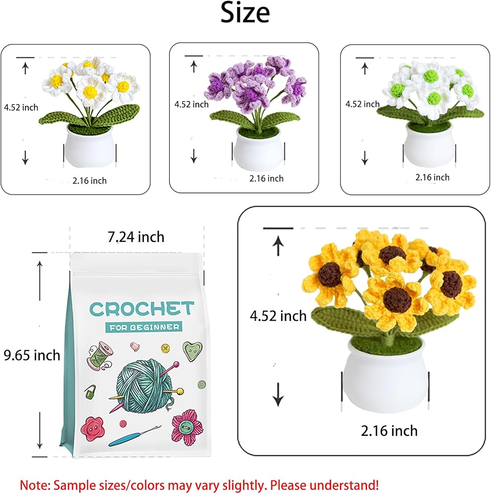 Crochet Flower Kits for Beginners Crochet Starter Kit with Step-by-Step Video Tutorials,Crochet Kits for Adults and Kids, DIY Sunflower Knitting Supplies, 4 Pack Plants Decorations