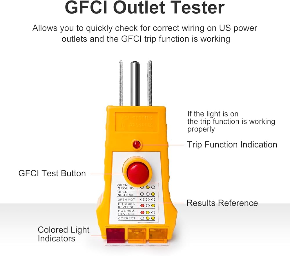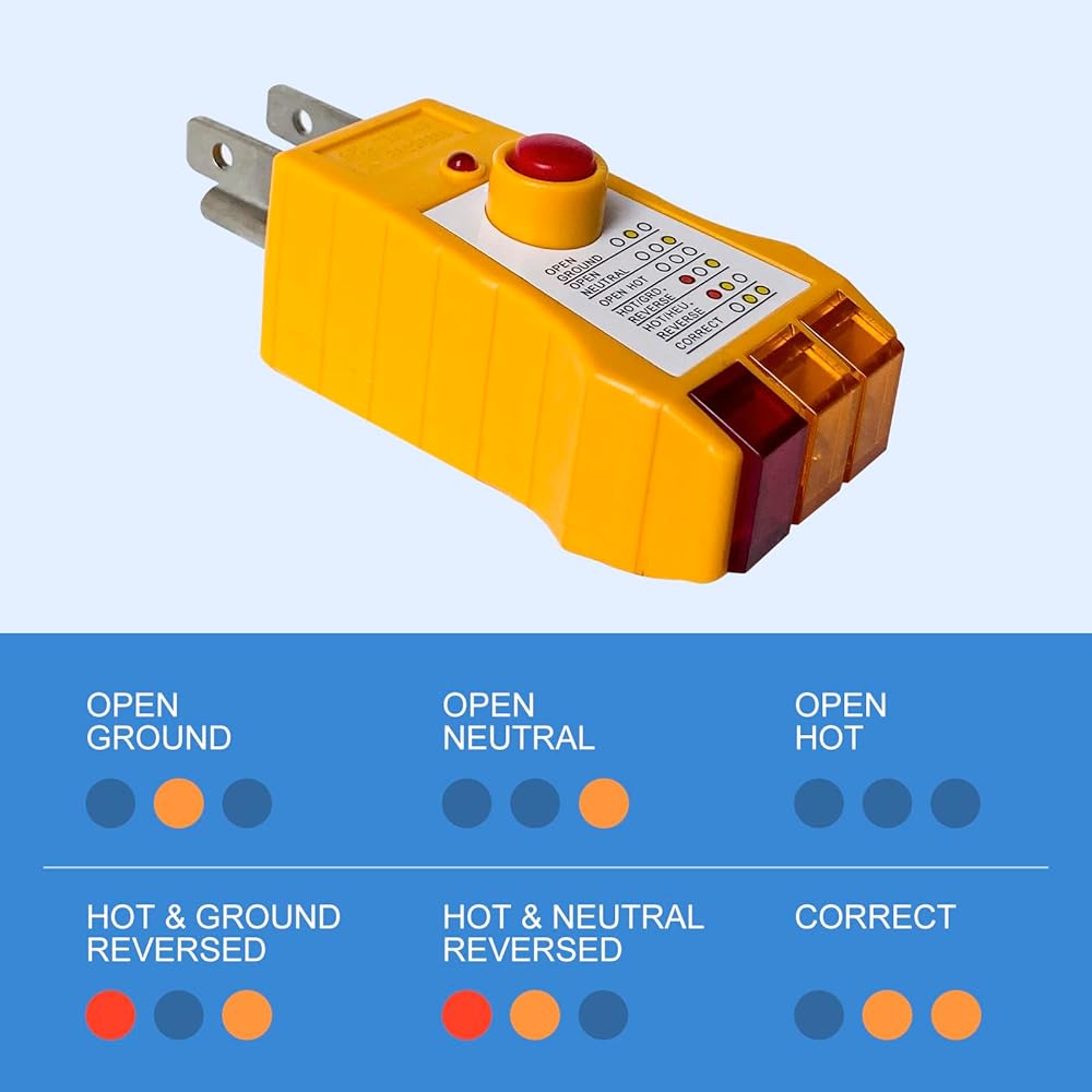 【Detect Common Wiring Faults】Just plug it in to easily detect outlet wiring problems fast according to the indicator light. Our outlet tester is a good helper for home socket safety.