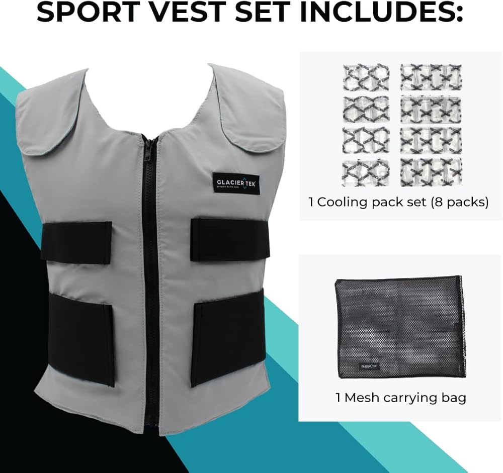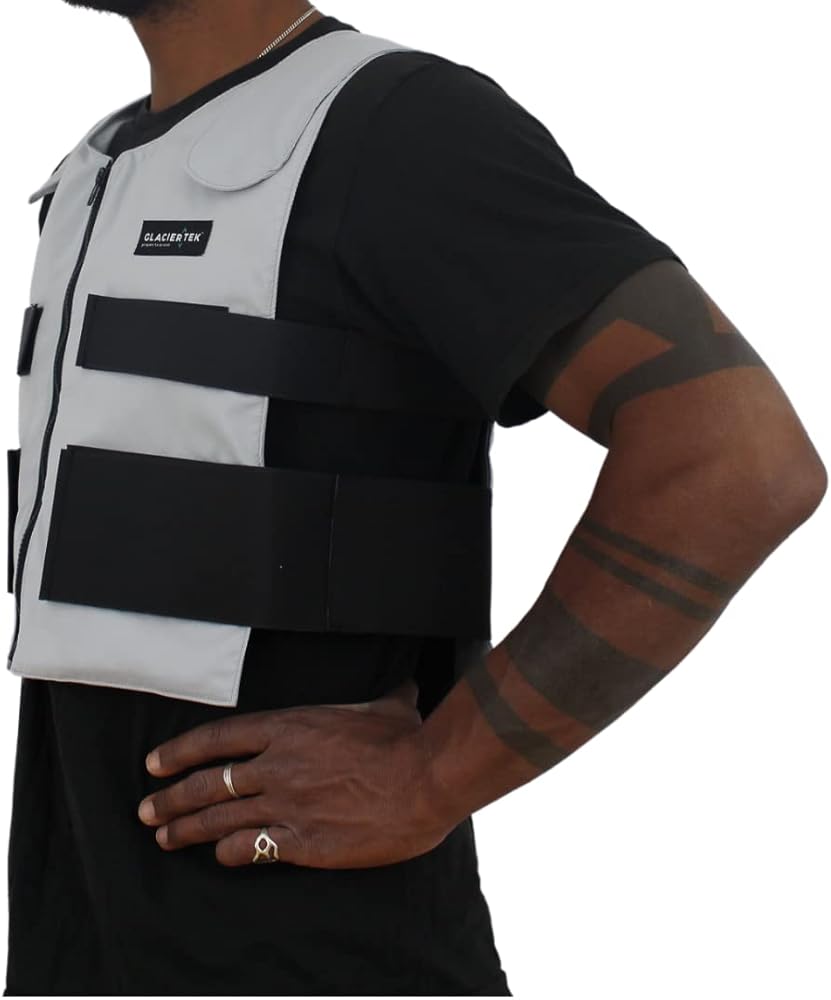 تبريد قابل للتعديل: لتمديد فترة التبريد لأكثر من ساعتين، فكر في شراء مجموعة احتياطية متاحة تحت ASIN B07FTTVPRT أو مجموعة Glacier Tek Booster ASIN B07NBTQHD9. مجموعة السترة محملة بالكامل بـ 8 عبوات تزن أقل من 5 أرطال. للاستخدام في ظروف أقل تطلبًا، مثل الاستخدام الداخلي، يمكنك جعل السترة أخف وزنًا باستخدام حزمة تبريد واحدة لكل جيب بدلاً من اثنين.