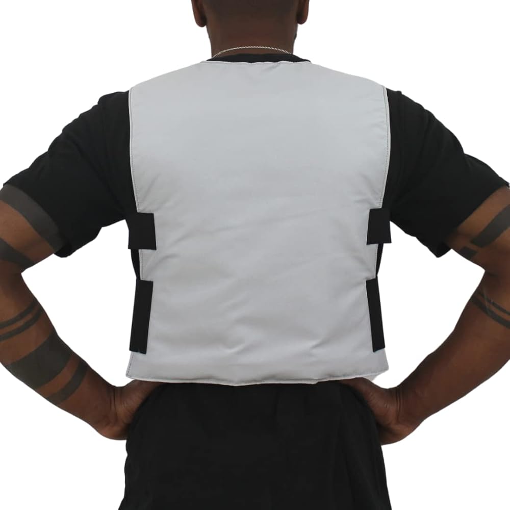 كيف تعمل: تحتوي سترة التبريد على أربعة جيوب داخلية تحمل العبوات بشكل مريح على الجذع. سوف تقوم العبوات المشحونة بسحب الحرارة من قلب الجسم مما يؤدي إلى خفض درجة حرارة جسم المستخدم بشكل فعال وتوفير إحساس بالتبريد. إنه علم بسيط، لا توجد حيل هنا. تعمل العبوات كممتص للحرارة، وهو محلول تبريد يحافظ على ملابسك جافة ويعمل في الرطوبة.