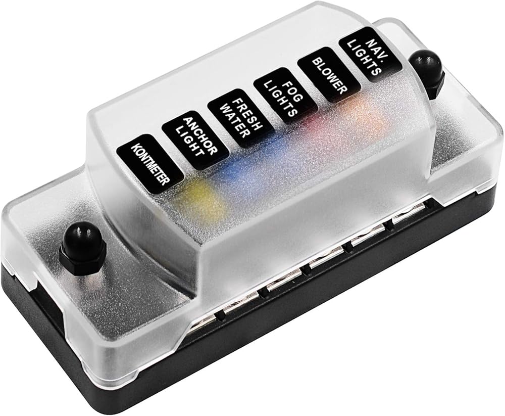 كتلة الصمامات E-Bro 12 فولت، كتلة الصمامات البحرية، كتلة الصمامات الشفرة مع صندوق مصهر السيارات السلبي ATC/ATO المقاوم للماء للسيارات 12 فولت/24 فولت/السيارة/الشاحنة/القارب/البحرية/RV (6 اتجاهات)