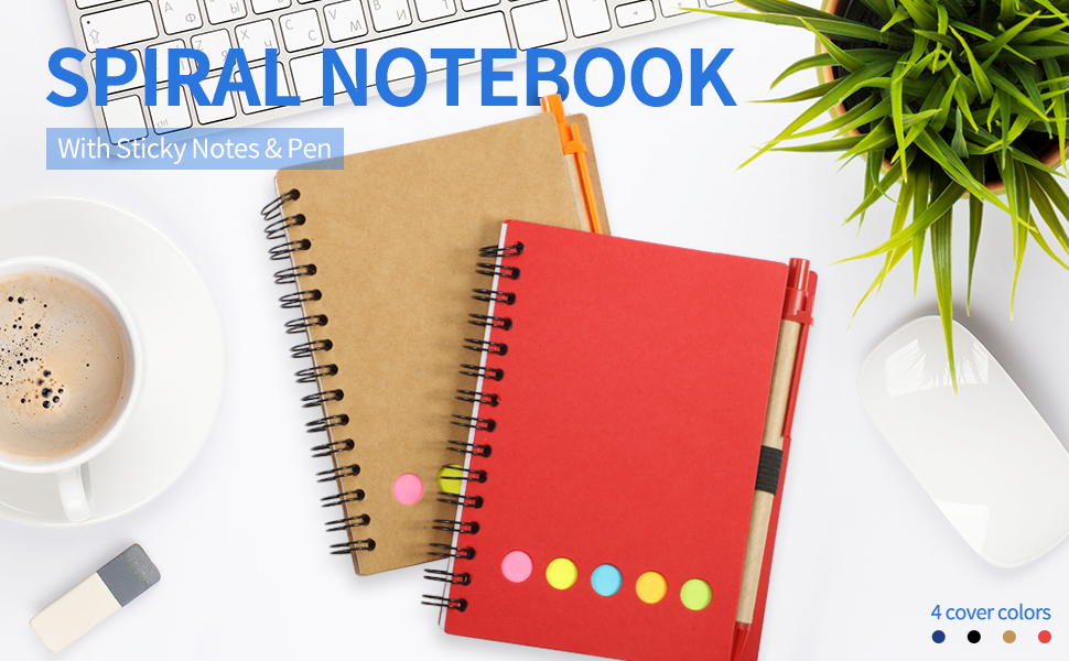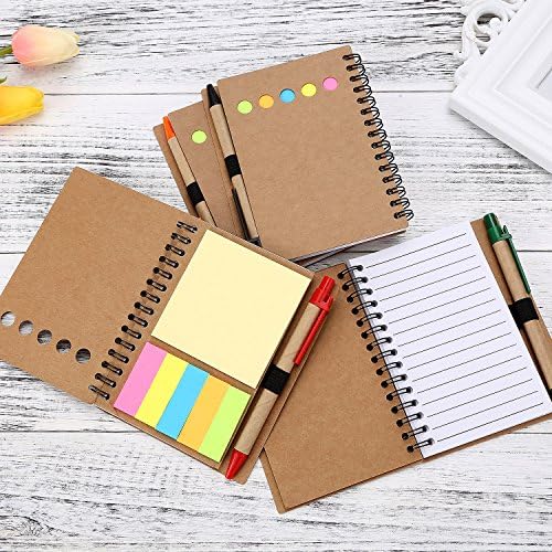 مريحة في الاستخدام: ستأتي إليك كل دفاتر ملاحظات حلزونية مع قلم في الحامل، وملاحظات وأعلام لاصقة، مع ورقة مبطنة مزدوجة الجوانب وحلقة مرنة لحامل القلم، مريحة في الكتابة ولا حاجة للبحث عن قلم أو قلم رصاص.