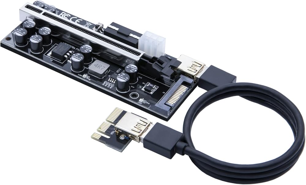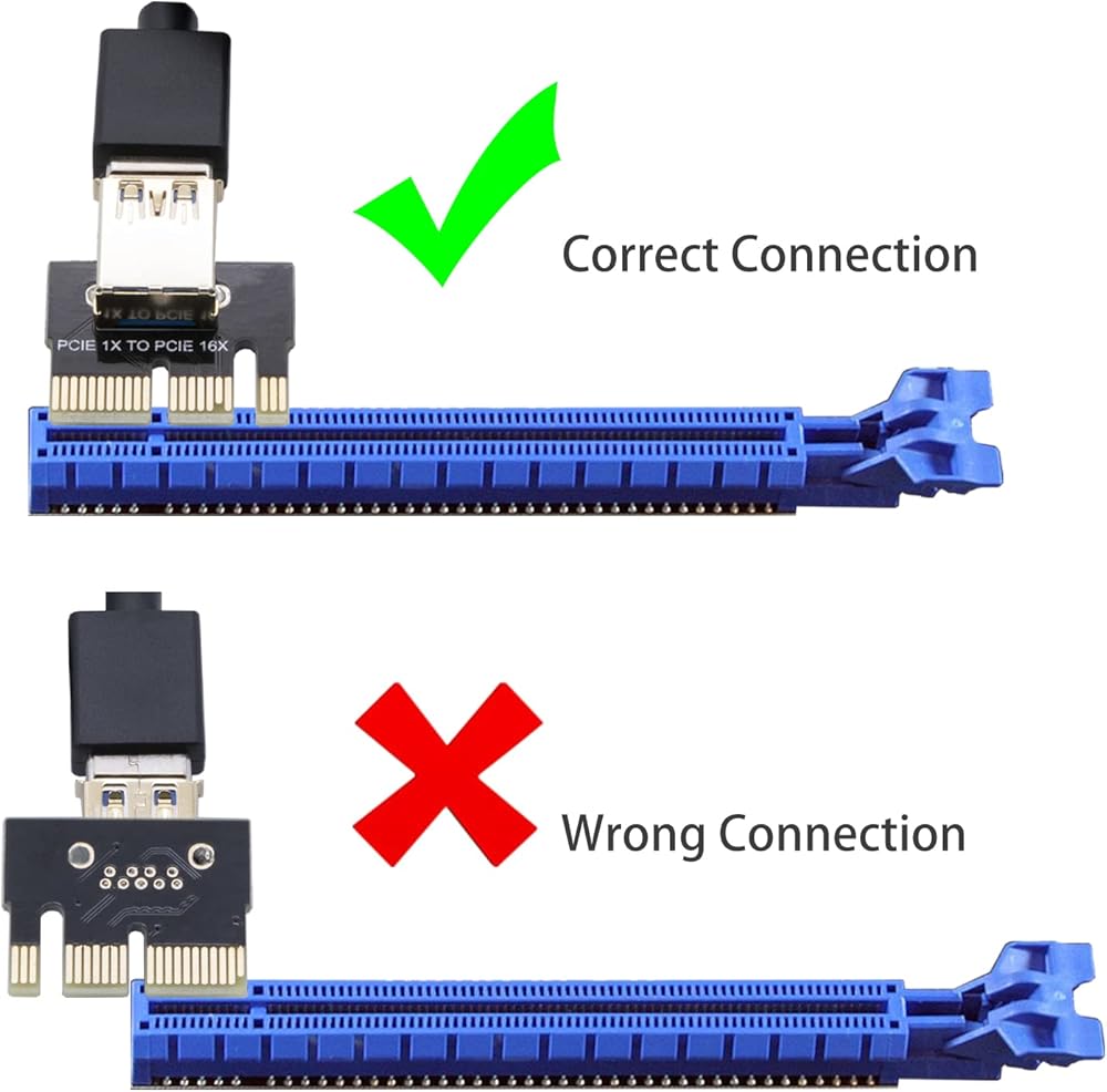 • * Upgraded 1x adapter to prevent putting it in backwards so miners will not accidentally damaged by putting backwards! Plug and play, no driver needed to install. PCI-E card can be inserted in any PCI-E slot: 1x, 4x, 8x, or 16x!