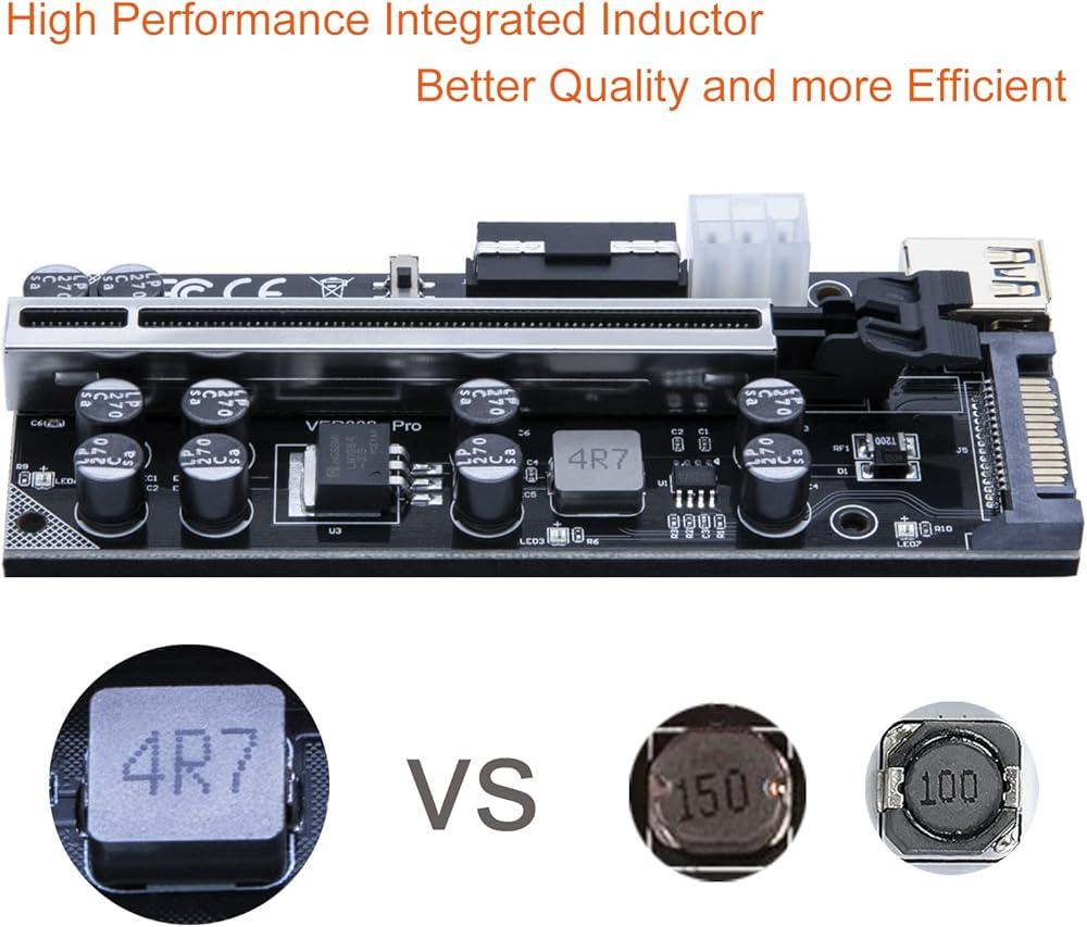 • * Mailiya 009s Pro PCIE RISER, newest and top of the line solution for setting up GPU mining rigs, with upgrade integrated inductor makes the pcie extension card more effective, help you gain more on your miner work.