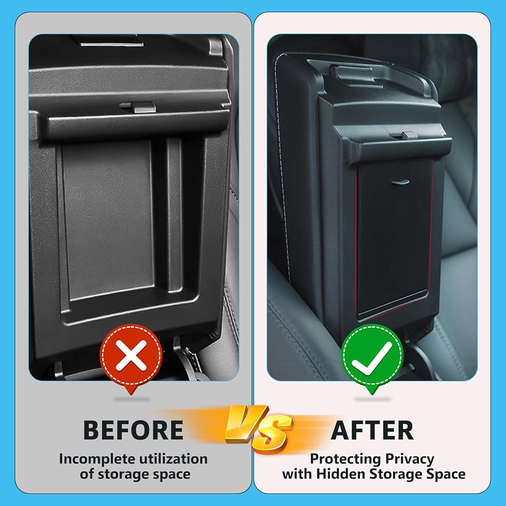 Perfect Fit: Designed to seamlessly integrate with your Tesla Model 3/Y, this center console organizer armrest hidden storage box maximizes the unused space beneath the armrest, providing a perfect fit.