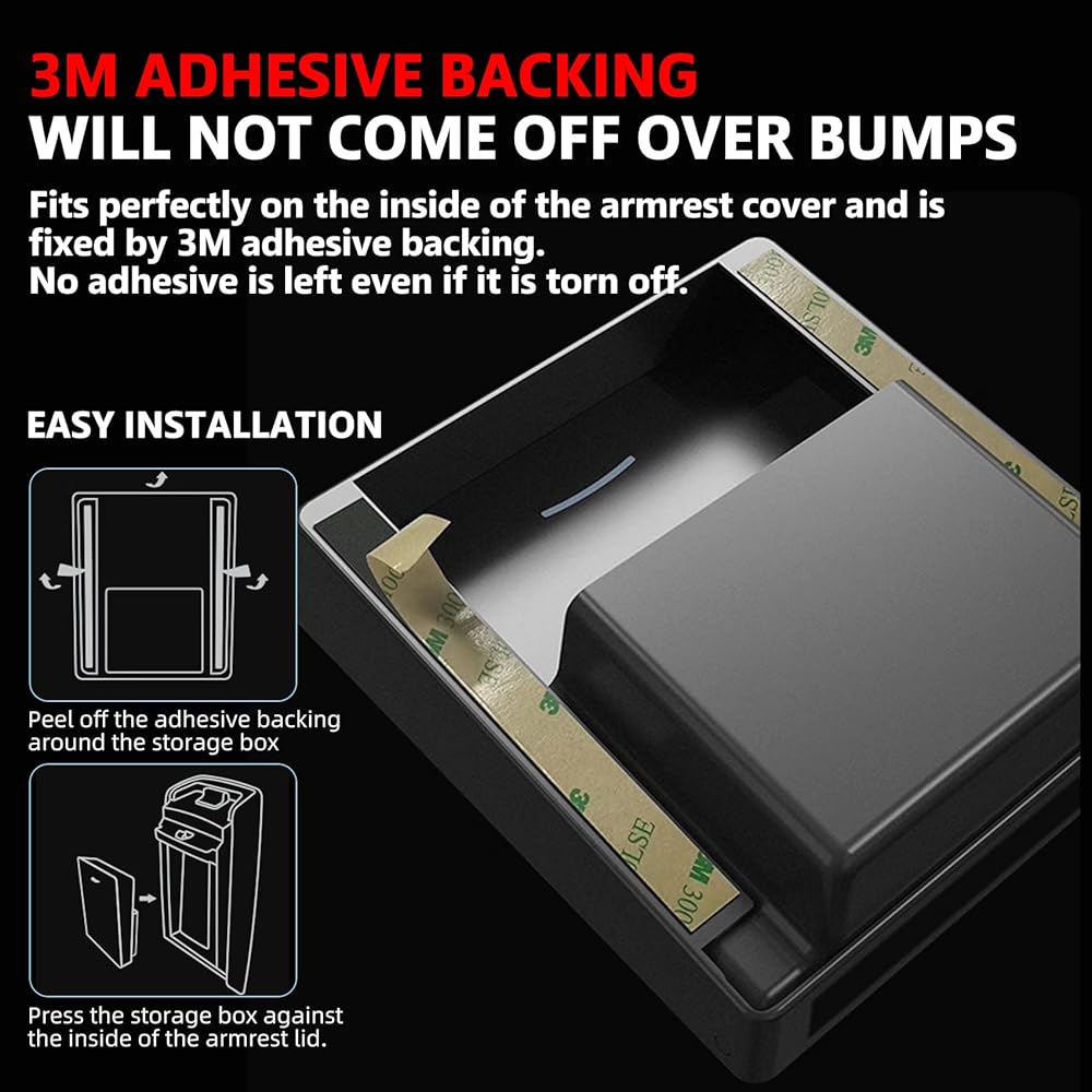 Secure Mounting Solution: Utilizing 3M double-sided adhesive, the storage box ensures a secure and sturdy mount underneath the armrest. This reliable installation method guarantees the box stays in place even during bumpy rides.