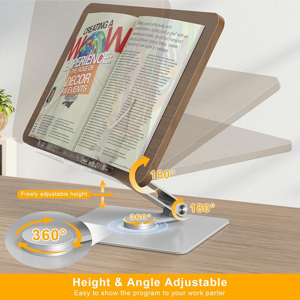 【حامل كتب مريح للقراءة】- حامل كتب قابل للتعديل بقاعدة دوارة 360 درجة، الزوايا والارتفاعات المتعددة ترفع الكتاب ليناسب عينك، وتعزز الوضع المناسب لصحة العمود الفقري بشكل أفضل، وتزيل العينين والرقبة والظهر والكتف. التعب أو الألم، وتحسين التركيز وكفاءة الدراسة، وإطالة وقت القراءة.