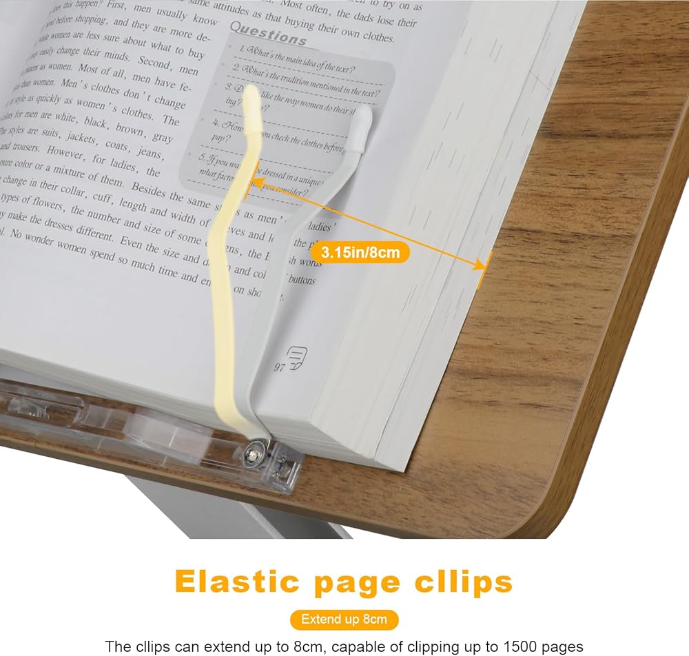 【لوحة عريضة مع مشبكين ورقيين مرنين】- استمتع بالقراءة دون استخدام اليدين مع حامل الكتب الخاص بنا. تحافظ على فتح الكتاب، والأطراف المطاطية تمنع تلف الورق. حامل كتب الطبخ متعدد الوظائف يناسب أحجام وأنماط مختلفة من الكتب والأجهزة اللوحية والمجلات والرسومات والنوتات الموسيقية والأصابع وأجهزة الكمبيوتر المحمولة.