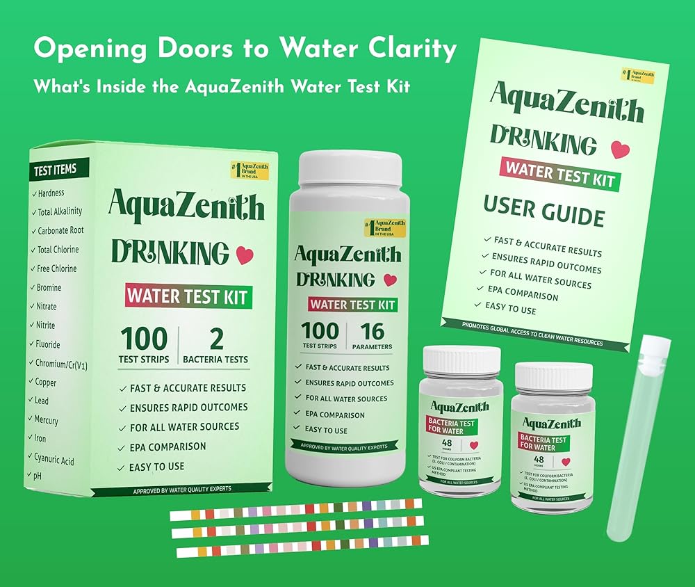 اختبار شامل: تتيح لك مجموعة اختبار المياه AquaZenith لدينا اختبار 16 معلمة مختلفة، بما في ذلك الرقم الهيدروجيني والكلور والرصاص والحديد والنحاس وأكثر من ذلك، مما يوفر تقييمًا شاملاً لجودة المياه لديك.