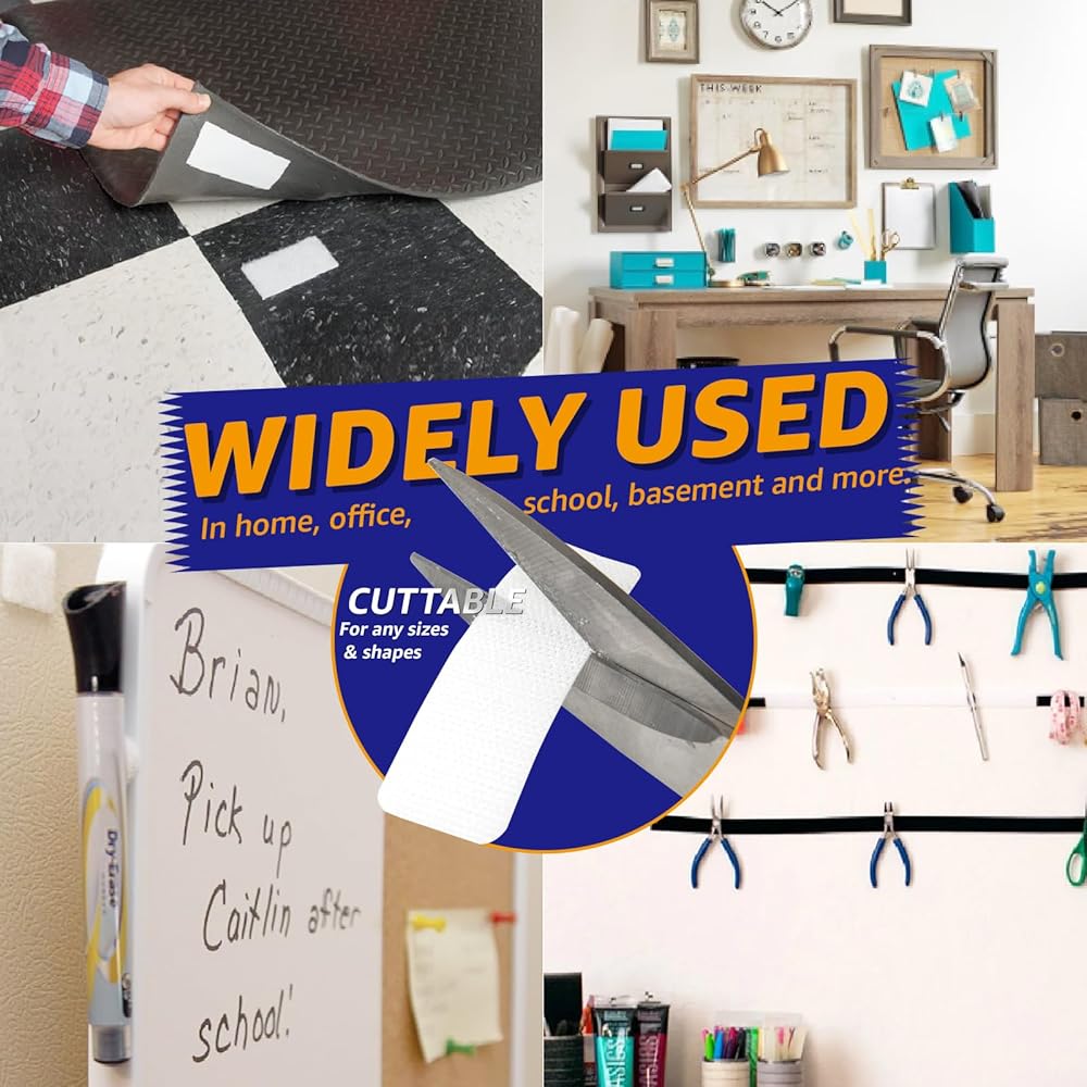 👍 WIDE APPLICATIONS - The sticky back of hook and loop fasteners perfect for hanging small photo frame, remote controls, sticking area rugs, mounting crafts, kitchen organizing, office wires and organizing cables, educational prints and more.