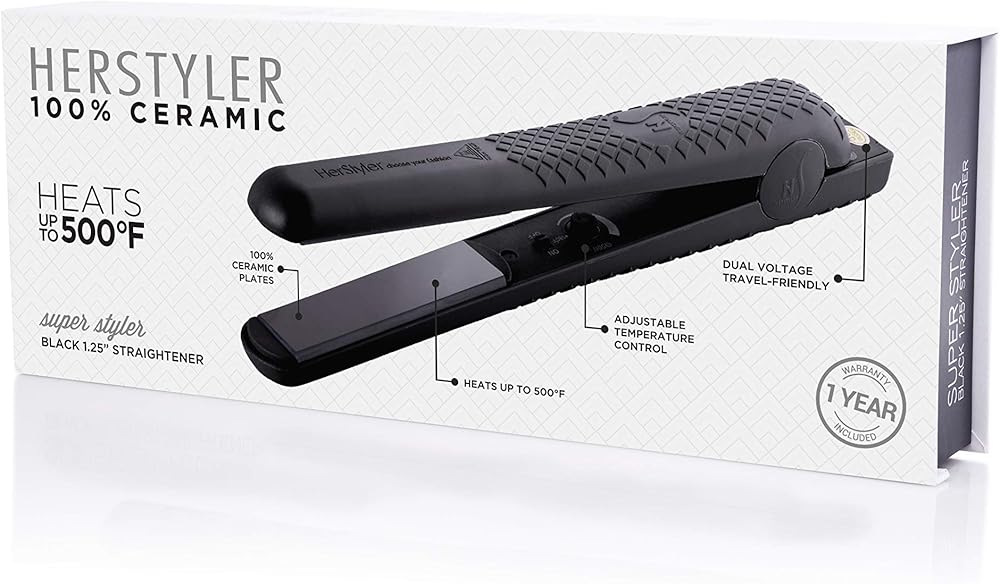 مكواة مسطحة من السيراميك من هيرستيلر سوبر ستايلر أونيكس، مكواة فرد الشعر من السيراميك مع درجة حرارة قابلة للتعديل، مكواة مسطحة مزدوجة الجهد مناسبة للسفر