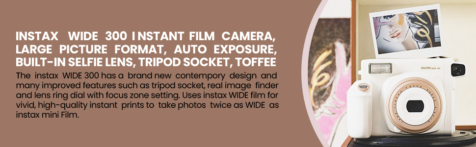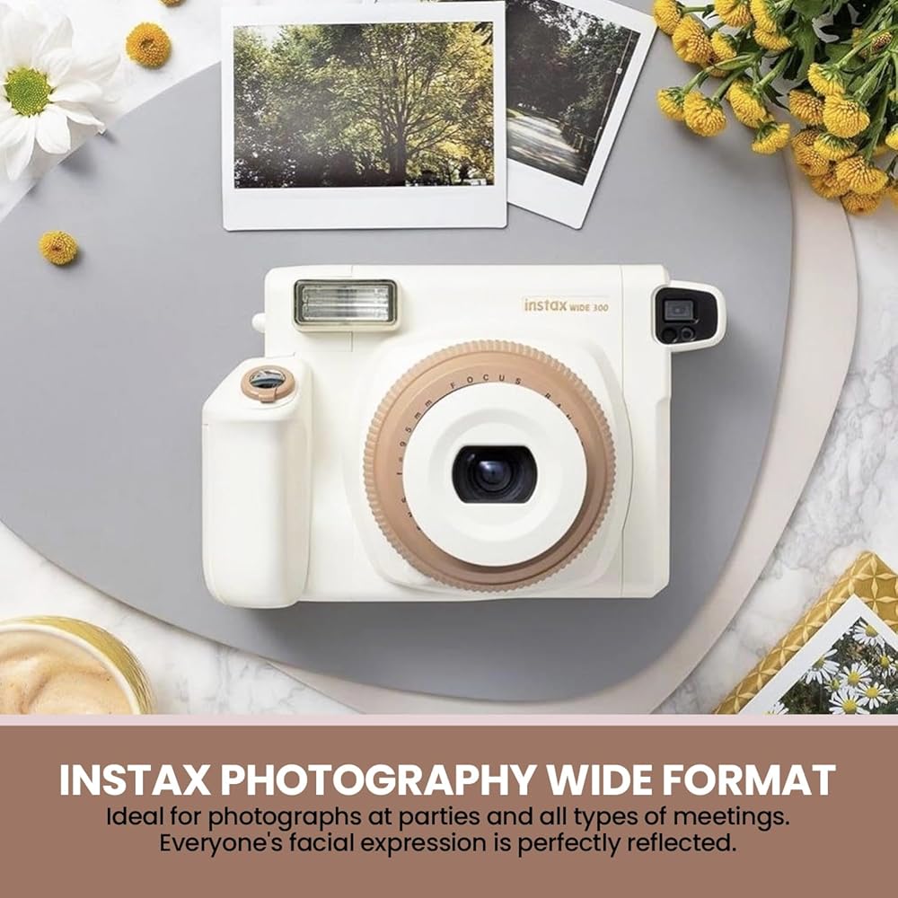 Vintage Charm in Toffee Finish: This FUJIFILM INSTAX WIDE 300 Instant Film Camera, with its elegant toffee finish, evokes a sense of old memories, blending timeless design with modern functionality. Ergonomically crafted, it is comfortable and easy, making every photo-taking session a delightful experience. Perfect for those who appreciate the fusion of aesthetics with contemporary performance.