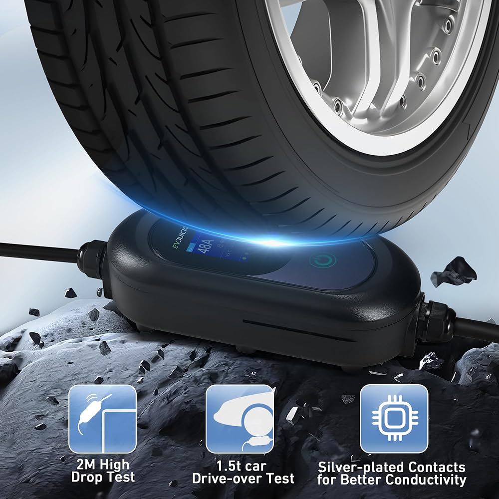 🔋Safety Assurance, for All EVs: Evjuicion 40A fast level 2 charger for Providing multiple safety features, including Leakage Protection, Short Circuit Protection, Over-Heat Protection, Ground Fault Protection, Over-Current Safeguard, Low-Voltage Defense, and Over-Voltage Prevention. Your safety is our priority. (IP67 waterproof, CE & FCC certified)