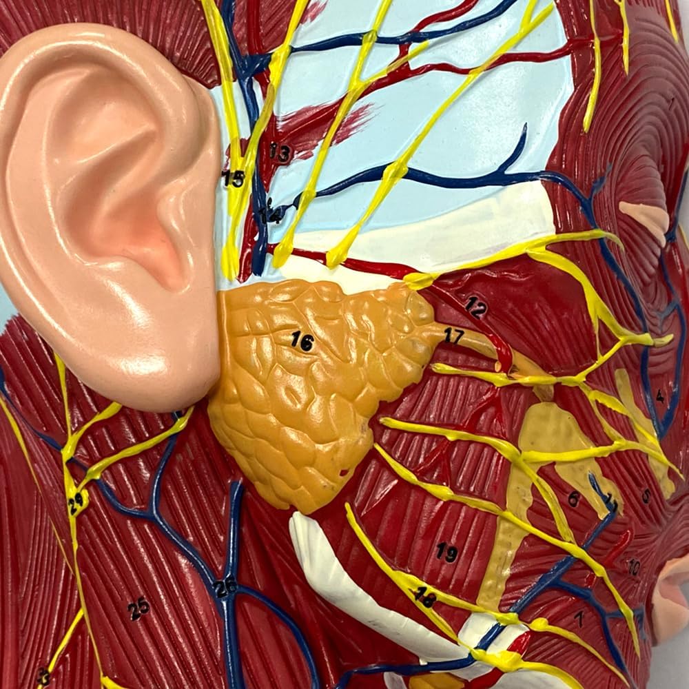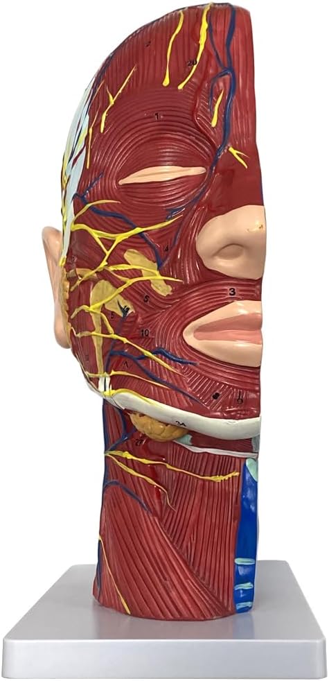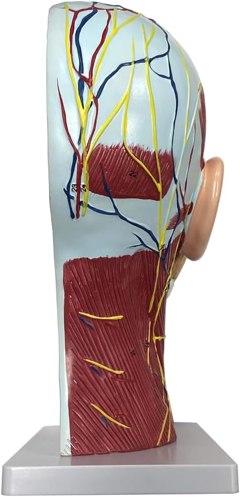 الجهاز العضلي: يشتمل النموذج على نظام عضلي مفصل، مما يسمح لك بمراقبة العضلات واتصالاتها في منطقة الرأس والرقبة. هذه الميزة مفيدة بشكل خاص لطلاب الطب وعلماء وظائف الأعضاء وعلماء الأعصاب الذين يحتاجون إلى دراسة وظائف العضلات في هذه المناطق.