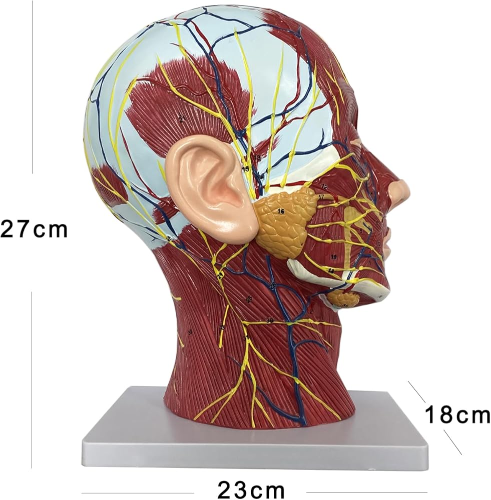 تصميم بالحجم الطبيعي: النموذج بالحجم الطبيعي، مما يجعله أداة مثالية للتعليم والتدريب الطبي. يمكن استخدامه من قبل المتخصصين الطبيين والطلاب والباحثين لدراسة منطقة الرأس والرقبة بالتفصيل ولفهم التشريح وعلم وظائف الأعضاء المعقد لهذه المناطق بشكل أفضل.