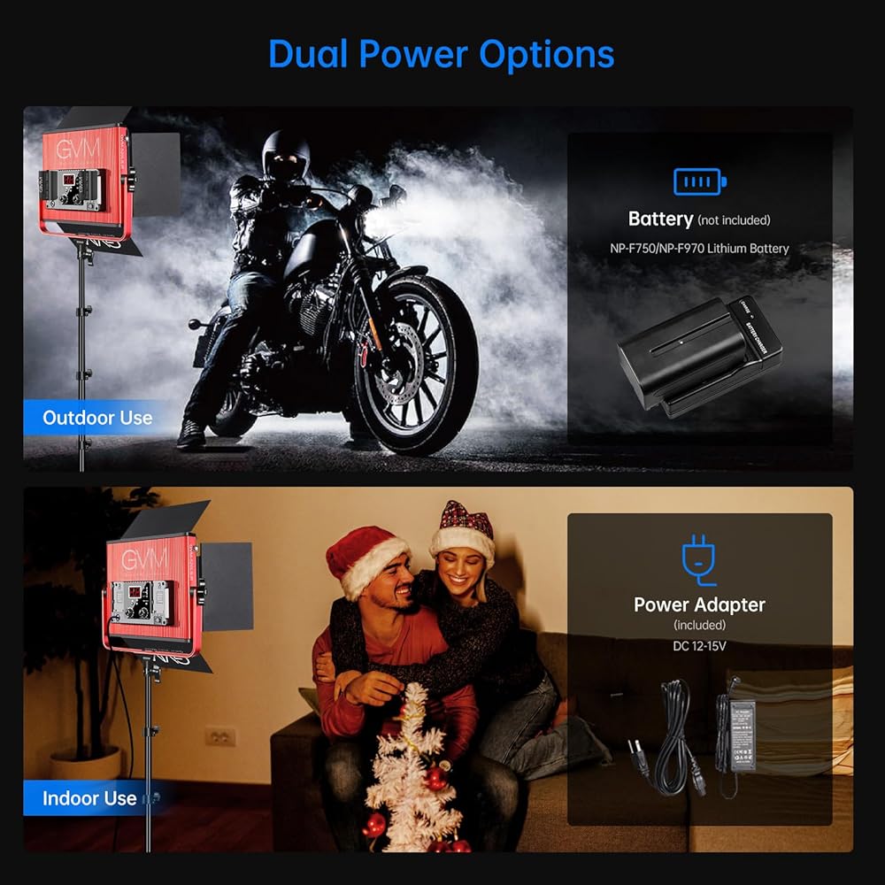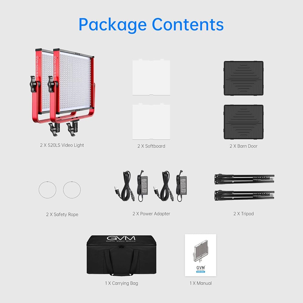 مجموعات إضاءة الفيديو GVM LED مع التحكم في التطبيق، عبوتان من إضاءة الفيديو ثنائية اللون 3200K~5600K، السطوع 10~100% لتصوير الفيديو، CRI97+ لوحة إضاءة فيديو LED مع Barndoor، حامل ثلاثي القوائم